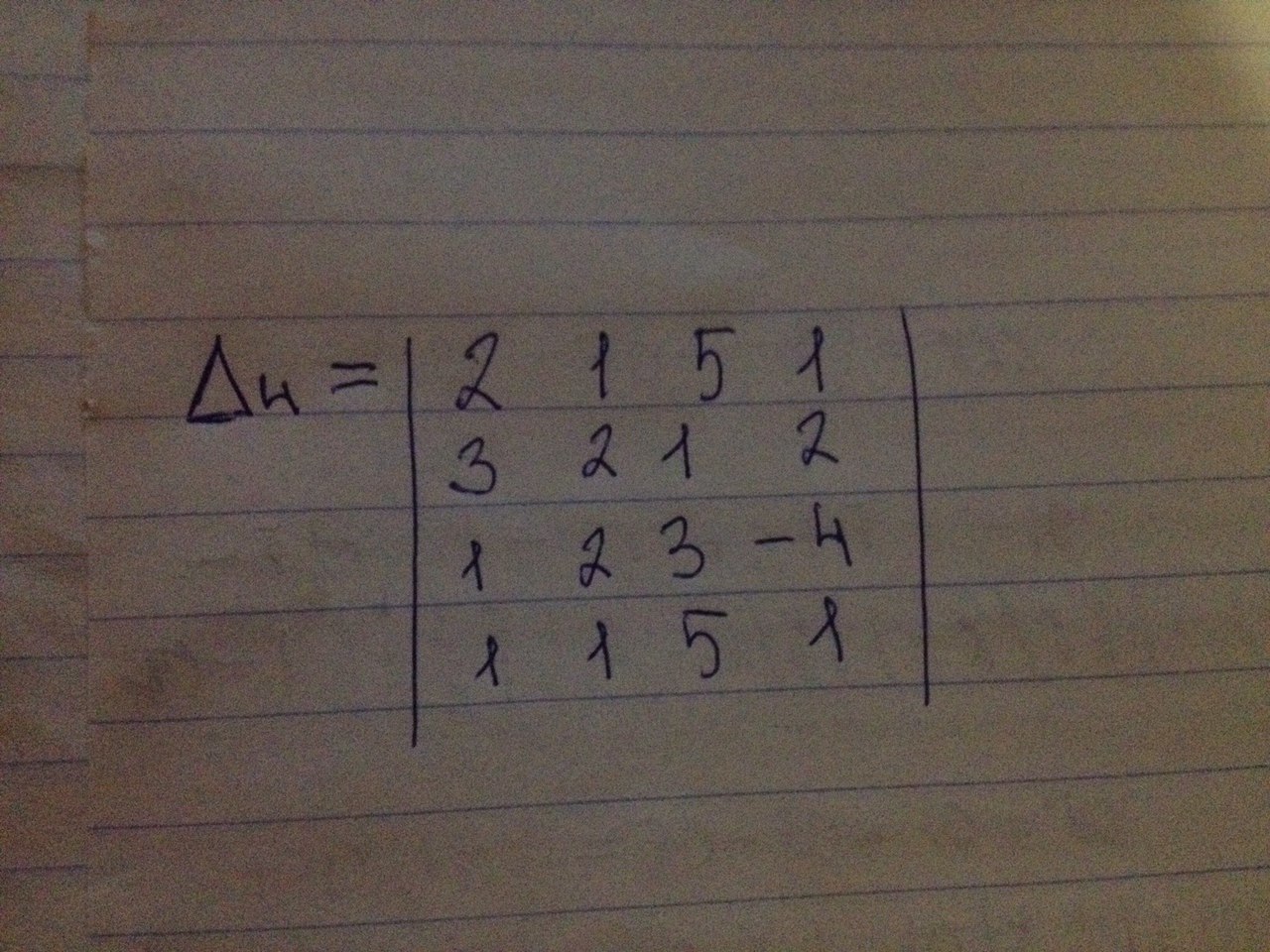=2* |(2 1 2)(2 3 -4)(1 5 1)| - 1* |(3 1 2)(1 3 -4)(1 5 1)| + 5* |(3 2 2)(1 2 -4)(1 1 1)| - 1* |(3 2 1)(1 2 3)(1 1 5)|=2*54 - 68 +5*6 - 16=54.
