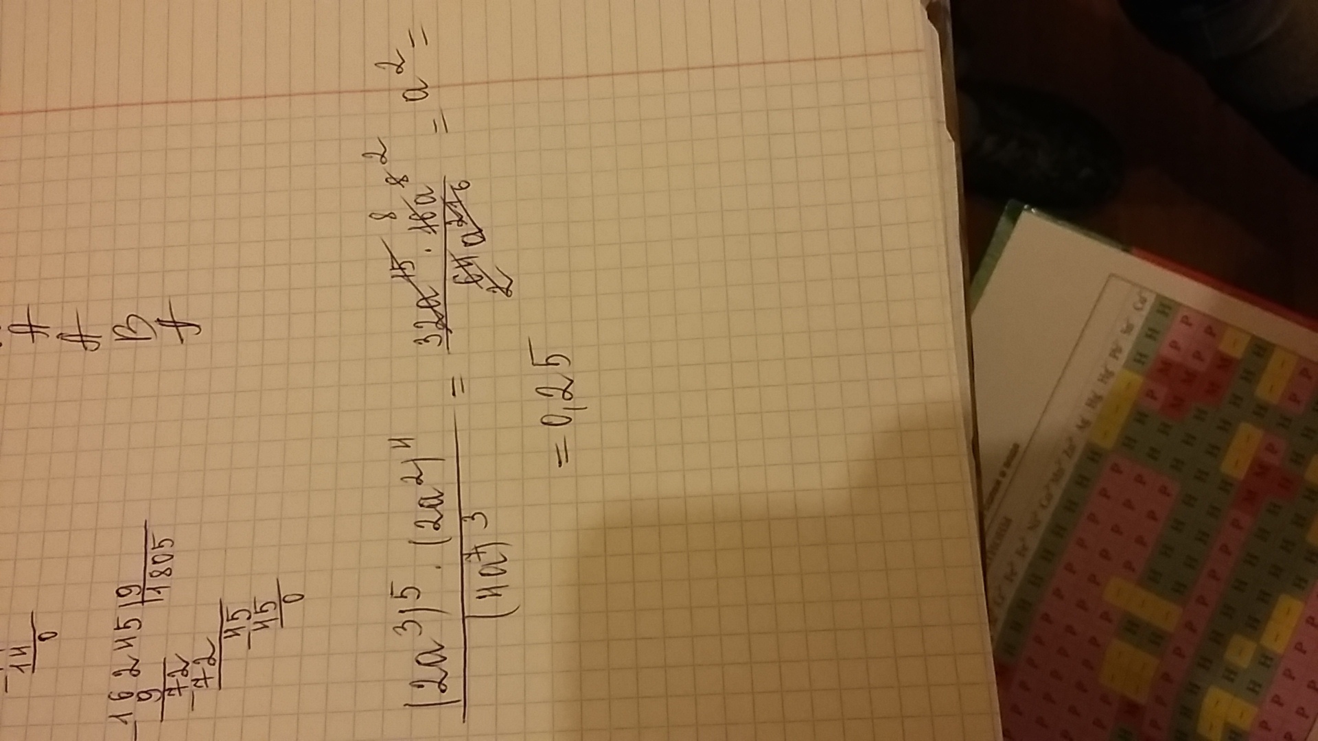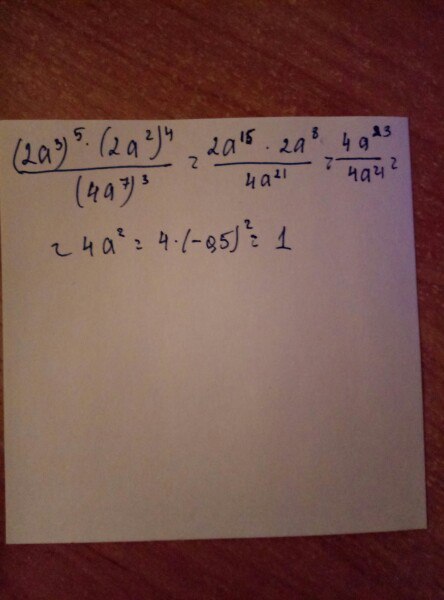 Оооой нет.. Там получается (32а^15*16а^8)/64а^21=512а^23/64а^21=8а^2=8*0.25=2