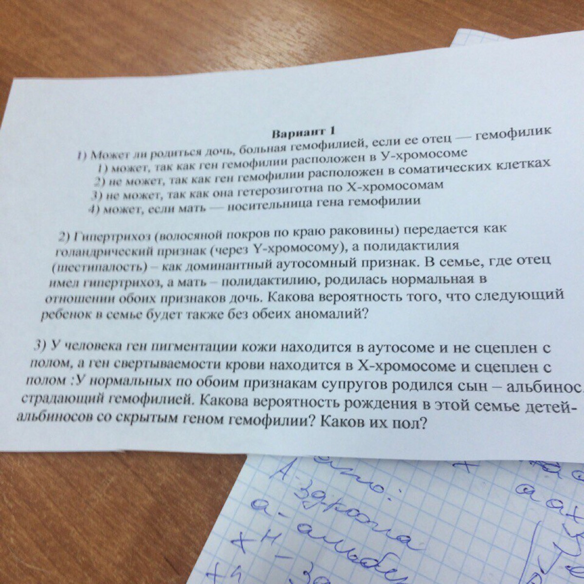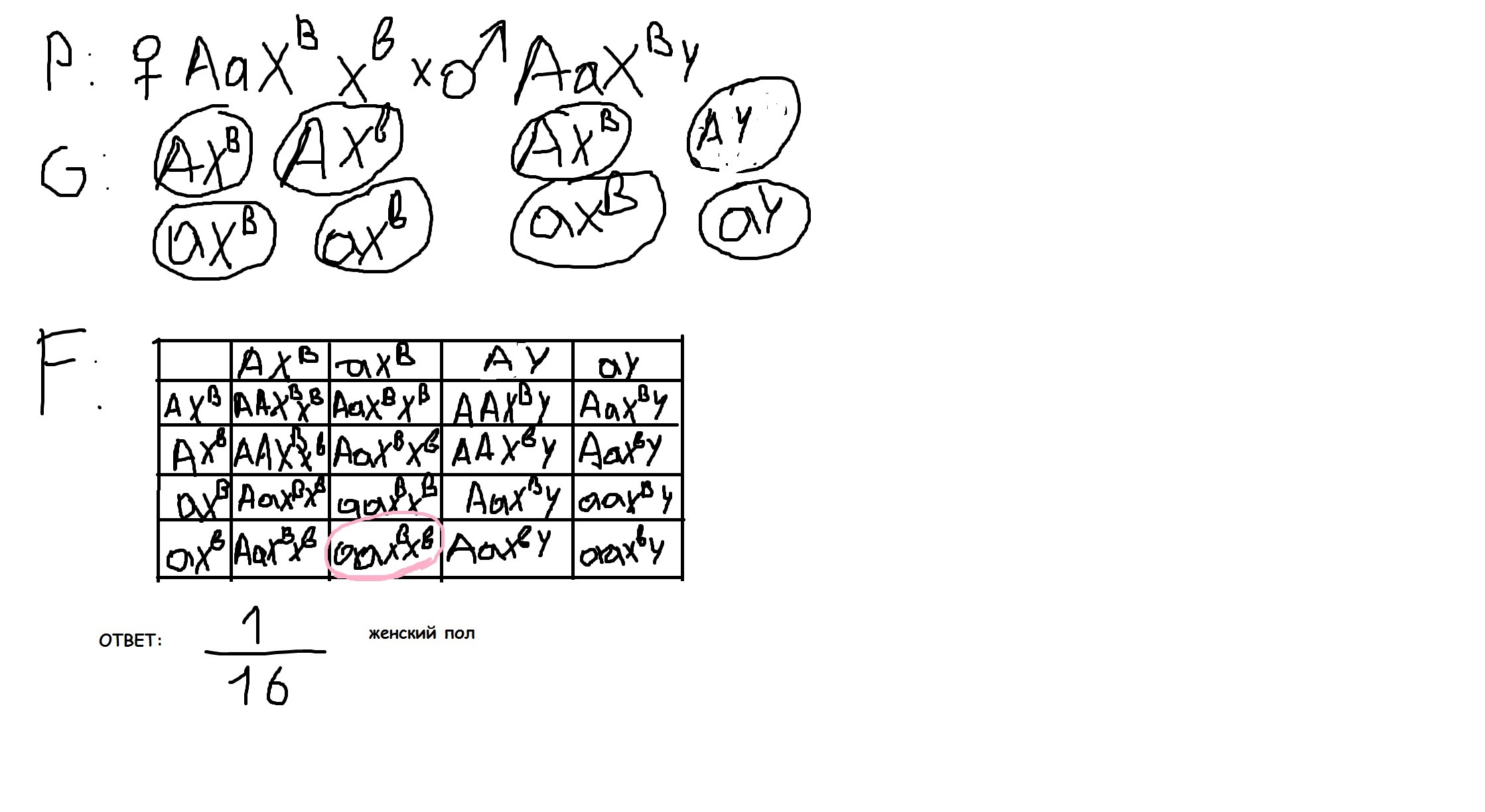 2) P:АаXX(мать) х ааXY(у "Y" сверху будет какая-нибудь буква,например, d)