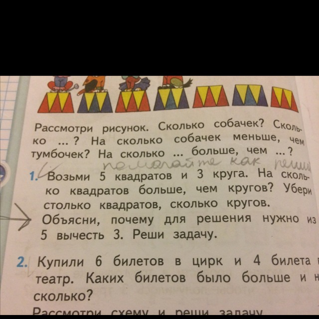 5-3=2 - квадратов на 2 больше чем кругов