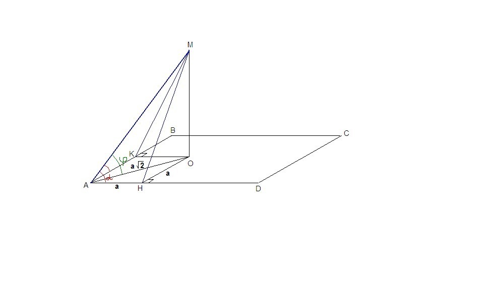 ΔAMO: cos φ = АO / AM = a√2 / (a / cos α) = √2cos α