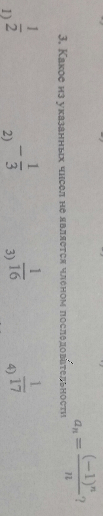 (-1) в нечетной степени отрицательна, поэтому 1/17 - не является членом заданной последовательности (должно быть -1/17)