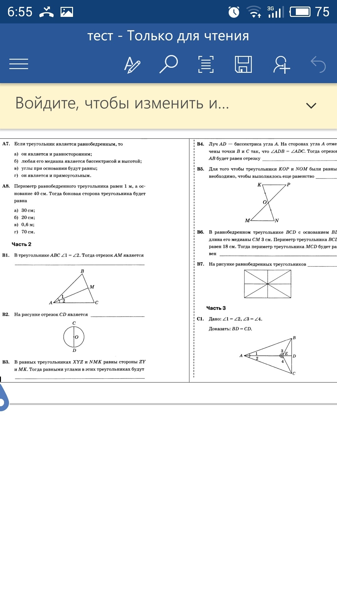 5- МО=РО и тогда треугольники будут равны по 2ум сторонам и углу между ними