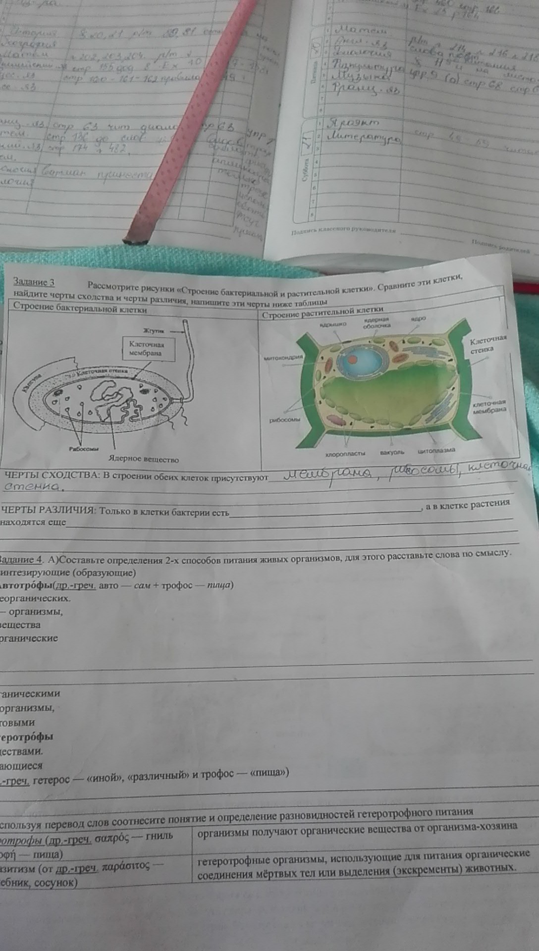 только в клетке бактерии есть ядерное вещество, а в клетке растения находится ещё хлоропласты и цытоплазмы