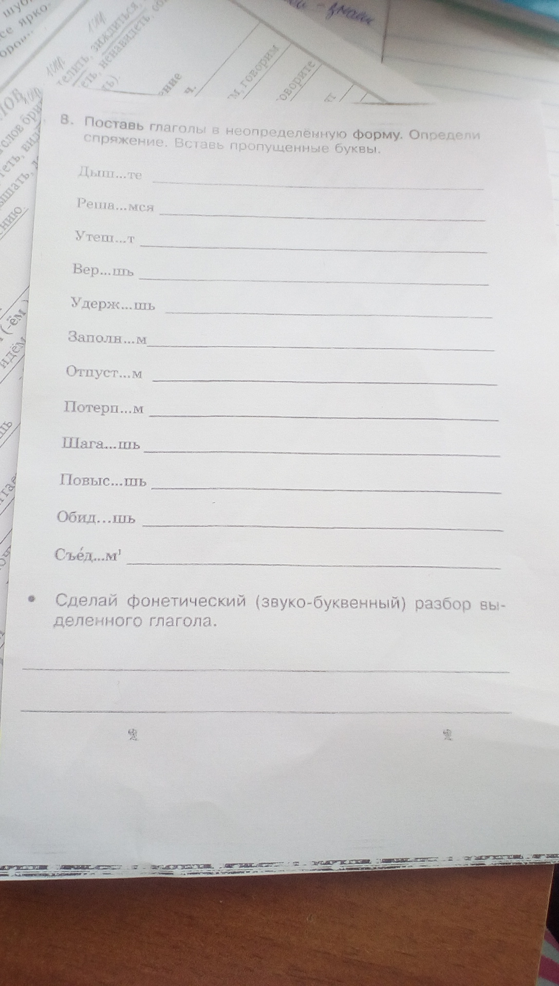 Дышите, решаемся, утешит, веришь, удержишь, заполним, потерпим, отпустим, шагаешь, повысишь, обидешь, съедим