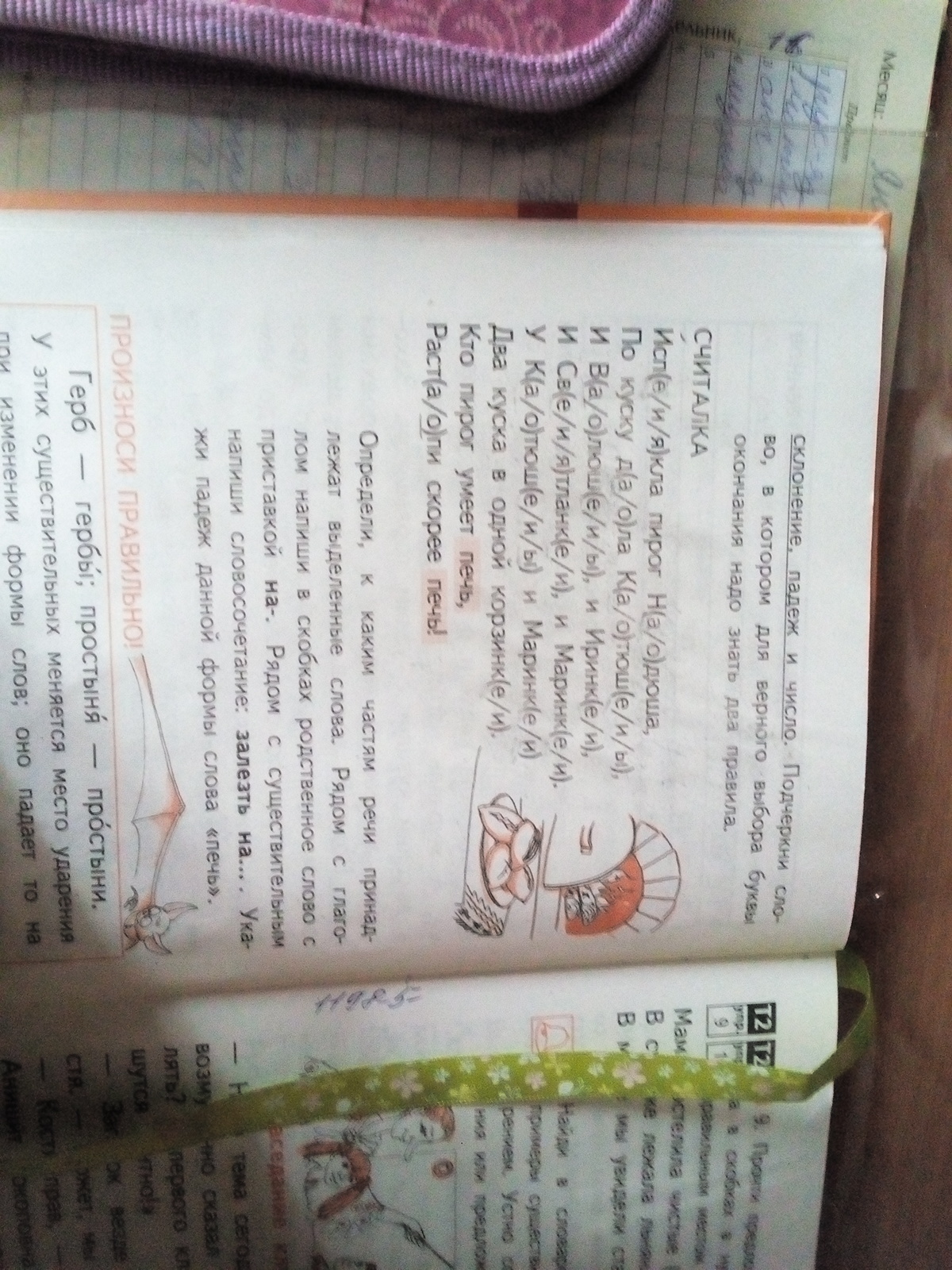 Помогите пожалуйста номер 8 Спиши текст на страничке 16 вставляя нужные буквы над существительными в которых нужно вставить букву е окончание укажи склонение падеж и число Подчеркни слова в которых для верного выбора буквы окончание надо знать два правила Определи к каким частям речи принадлежат выделенные слова рядом с глаголом напиши родственные слова приставкой над существительными словосочетания укажи падеж данные формы слова печь