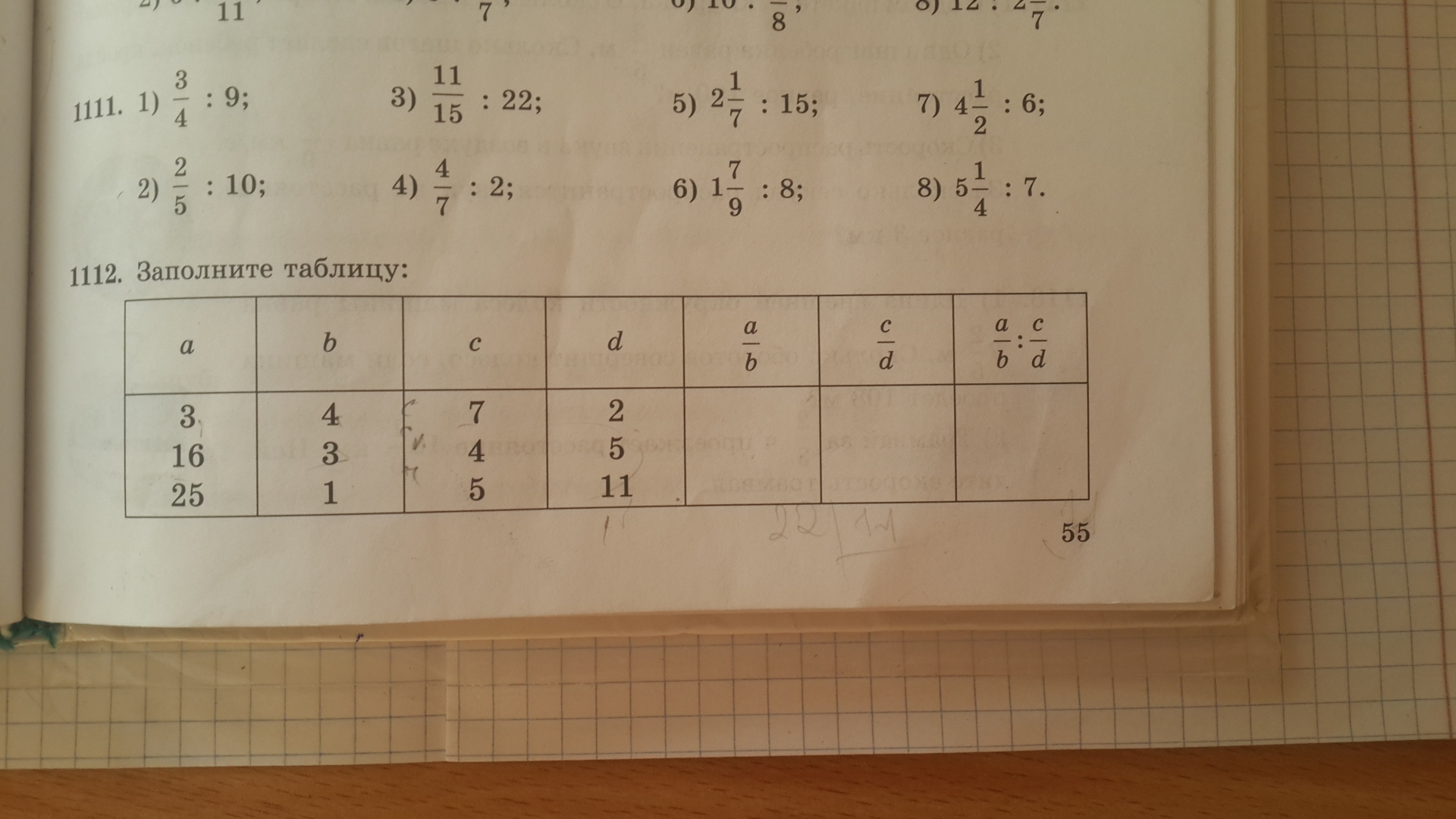 25/1 : 5/11 = 55