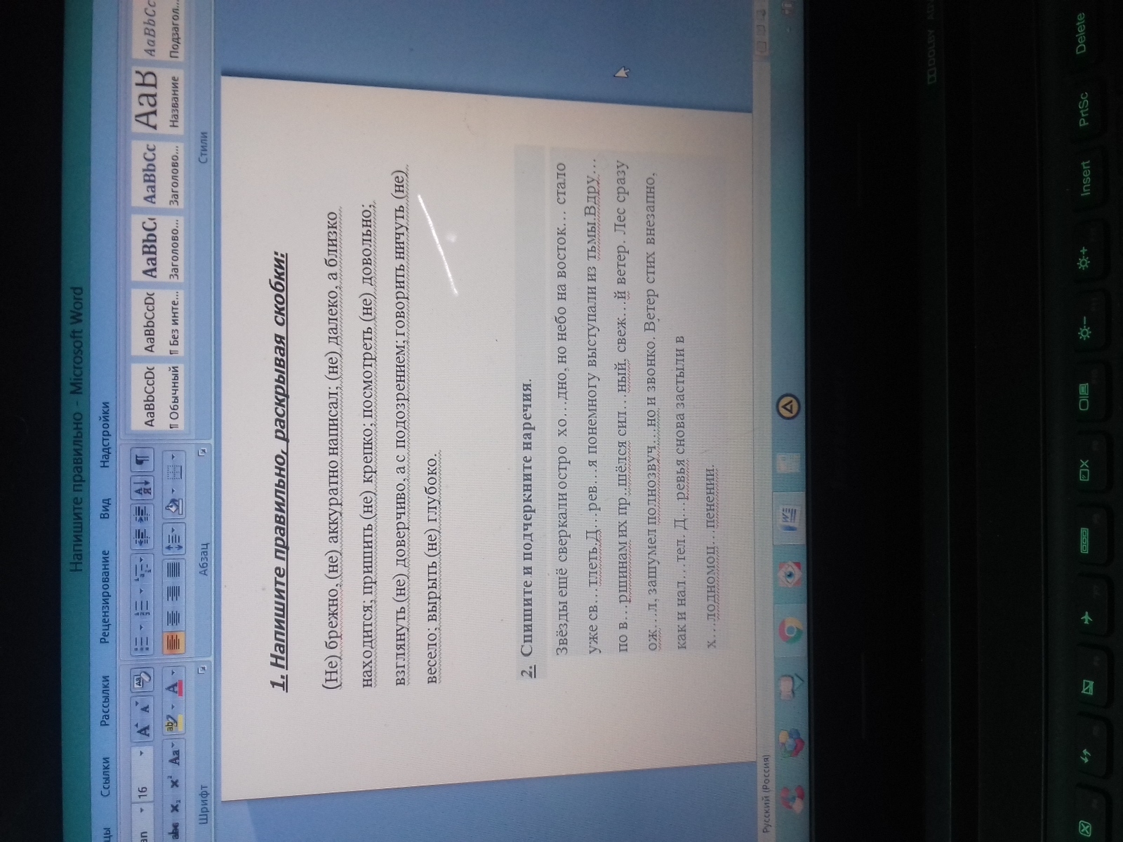 1.небрежно, неаккуратно, не далеко, некрепко,недовольно, не доверчиво, ничуть не весело, неглубоко