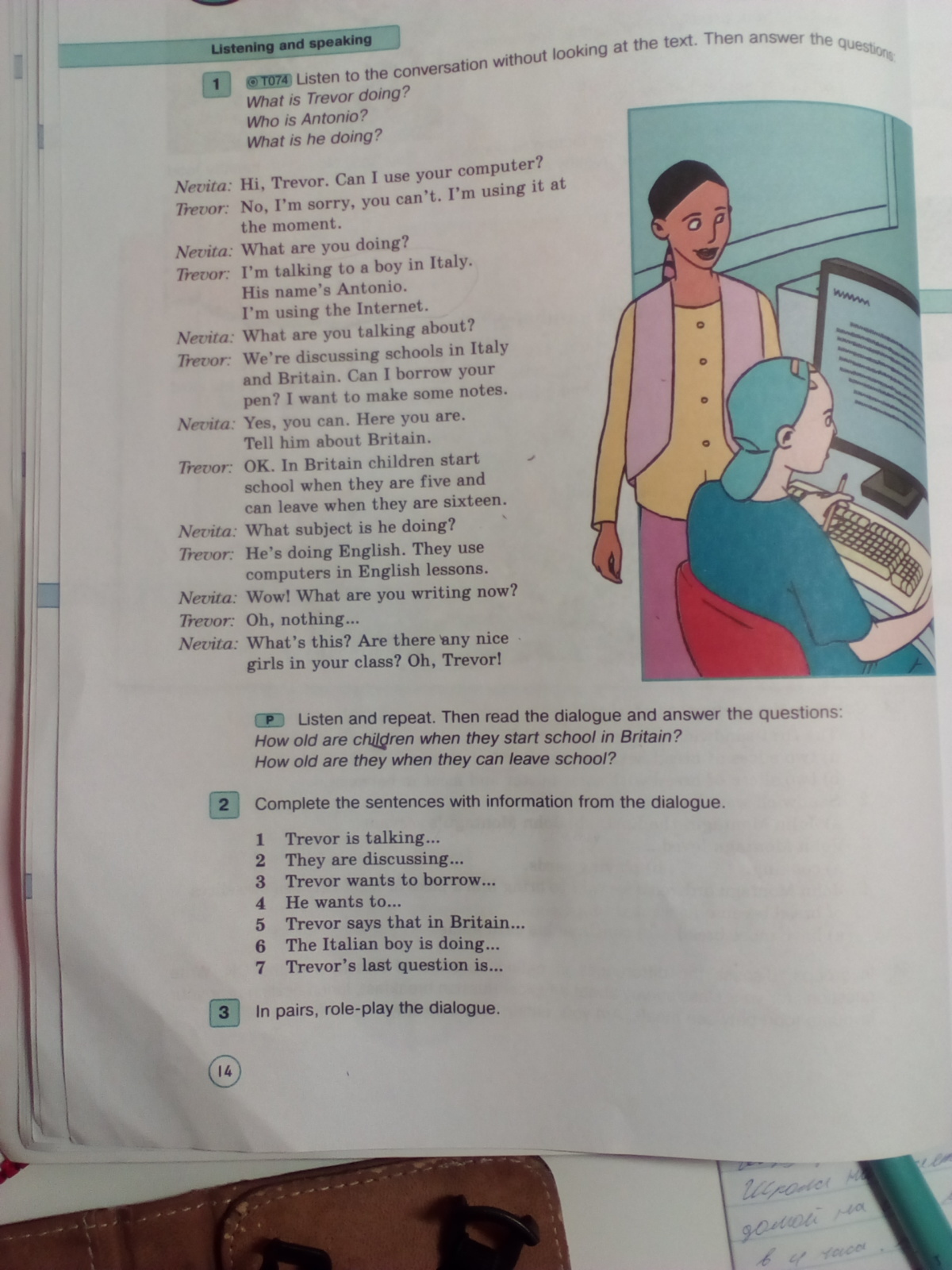 5)trevor says that in britain children start school when they are 5, and can leave when they are 16