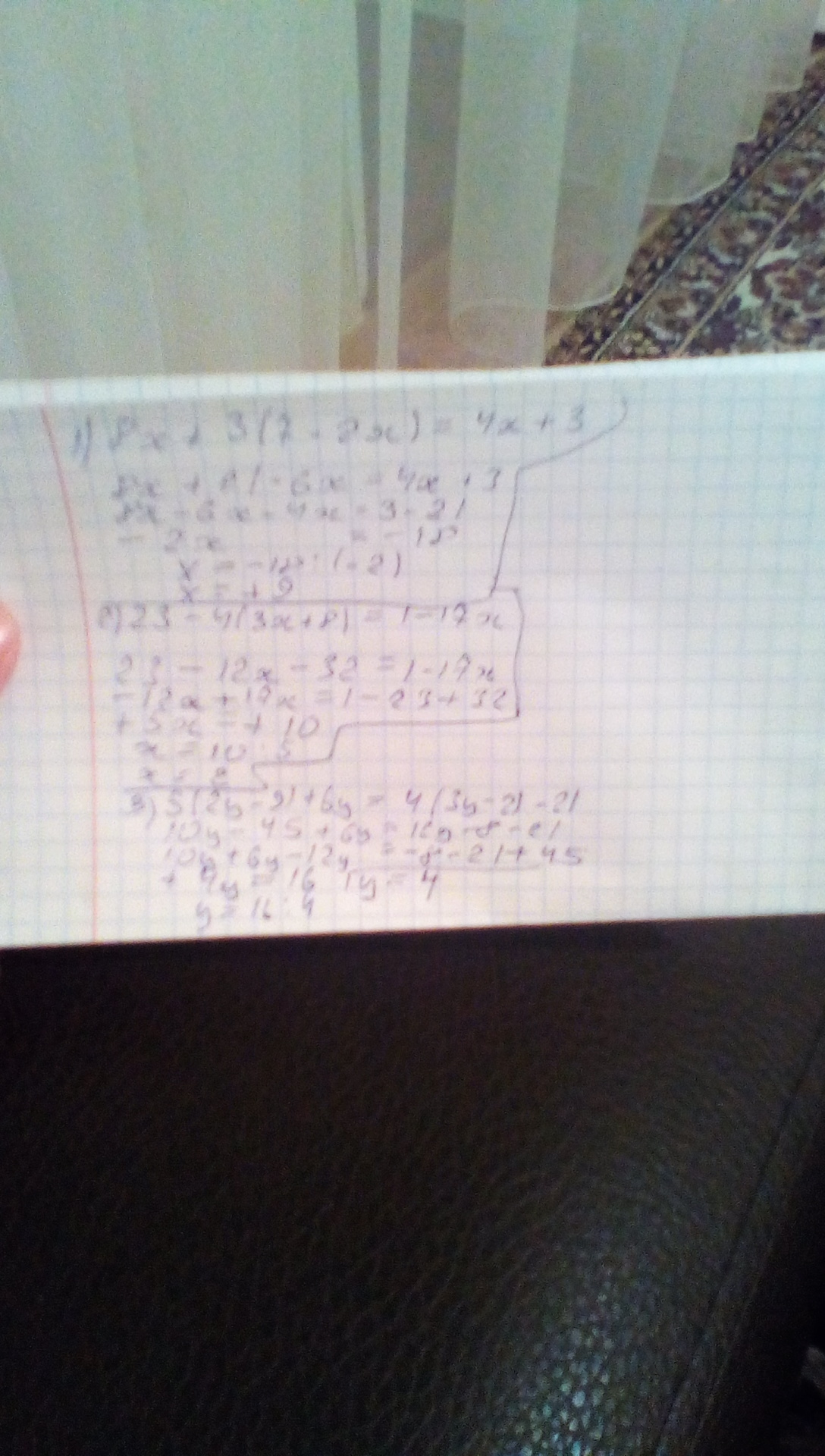 1)8х+3(7-2х)=4х+3;