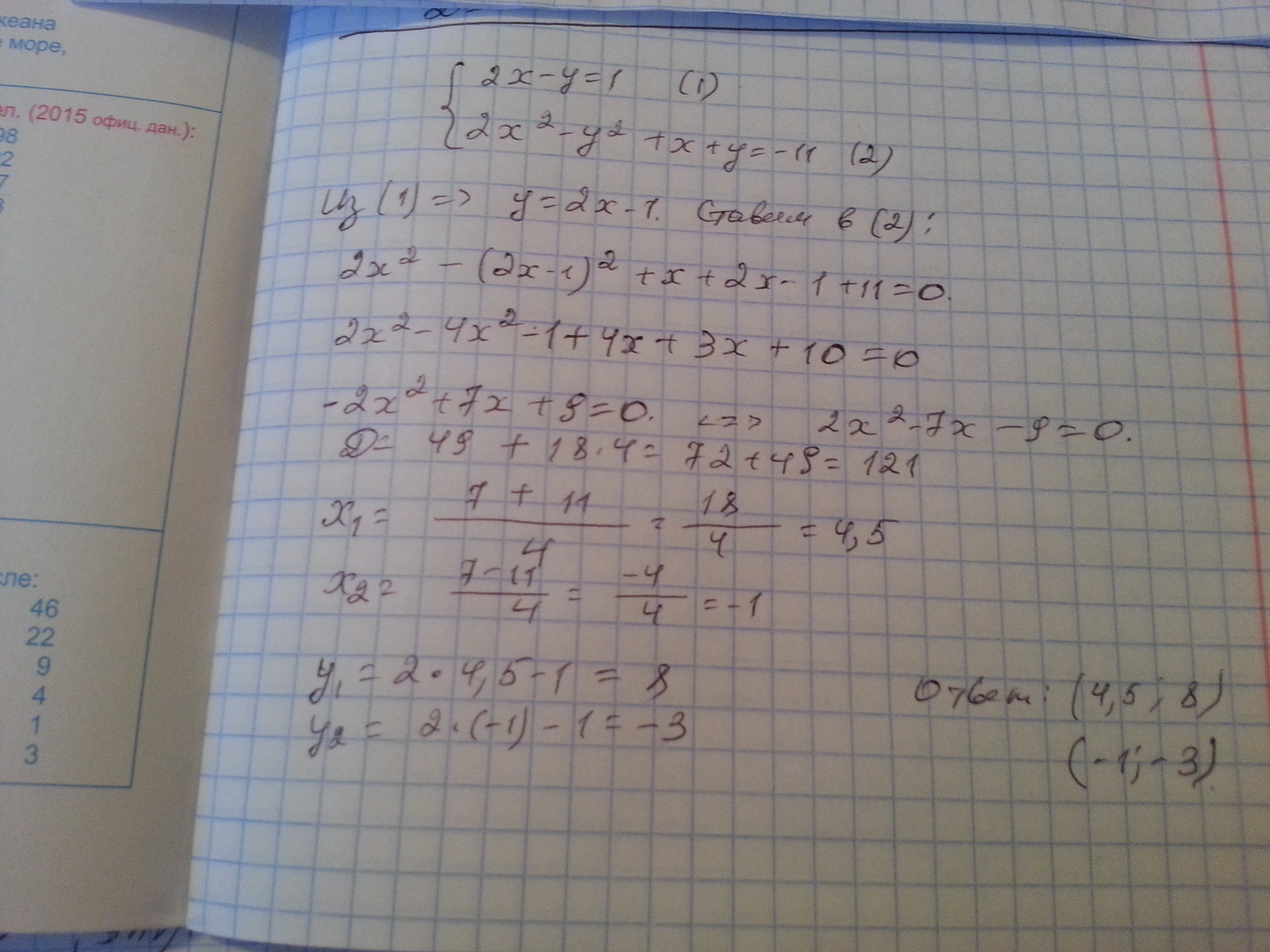 решите систему {2x-y=1; {2x^2-y^2+x+y=-11