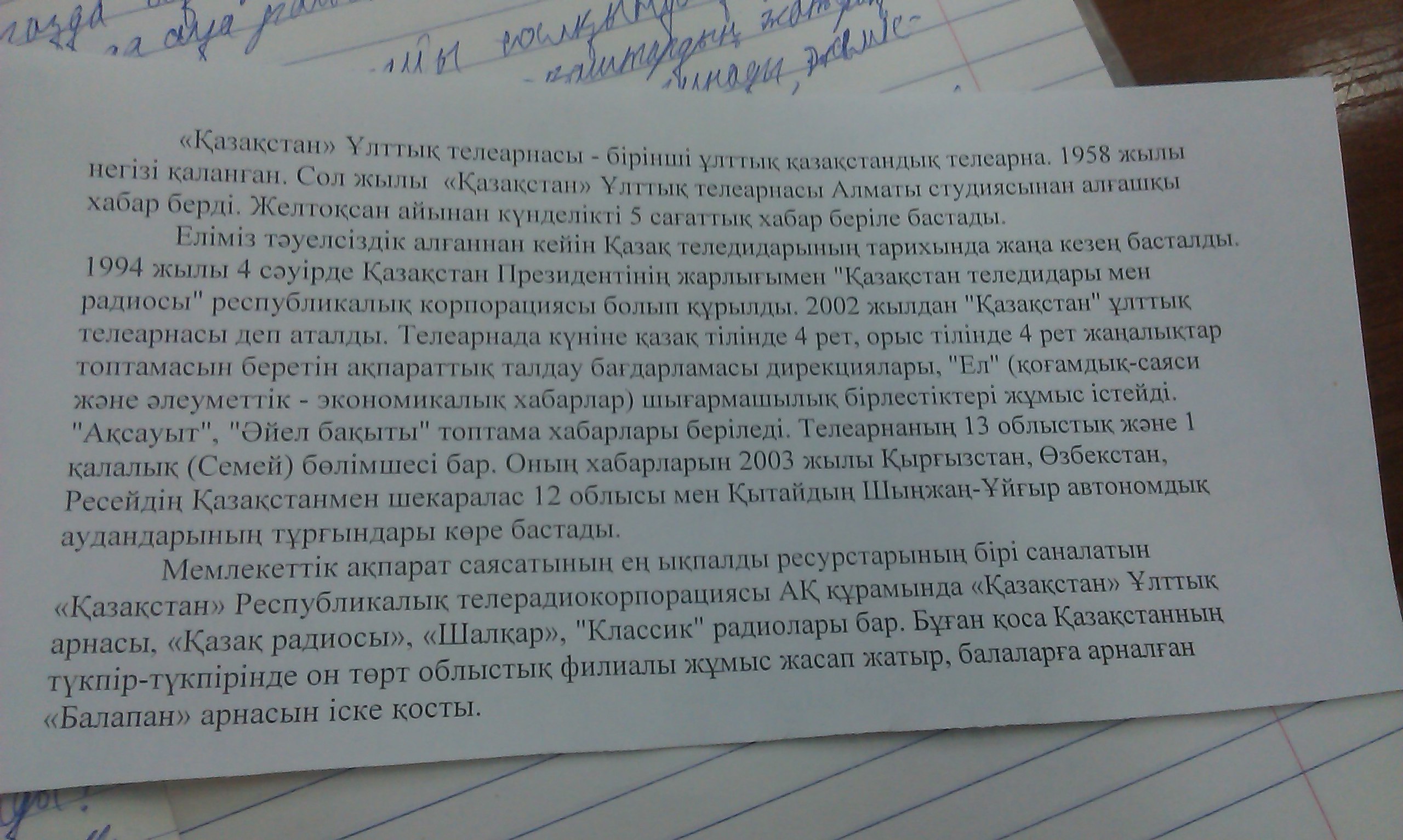1)Қазақстан ұлттық телеарнасының қаланған жылы?
