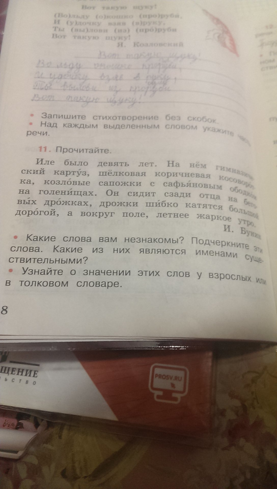 Снажала ты подчеркни те слова которые не понимаешь и спроси у родителей или интернета Что означет это слово ...(пишешь слово) и тебе выдают!Но если серьезно то картуз это мужской головной убор похожий на фуражку,софьяновым это тонкая и мягкая овечья или овчая кожа,голенища это часть сапога от подьема