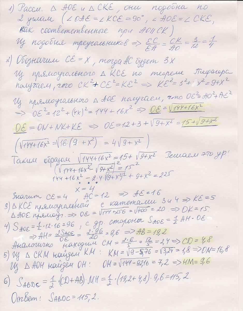 Боковые стороны по 12 получаются, трапеция равнобедренная, не получается дальше продвинуться в решении!