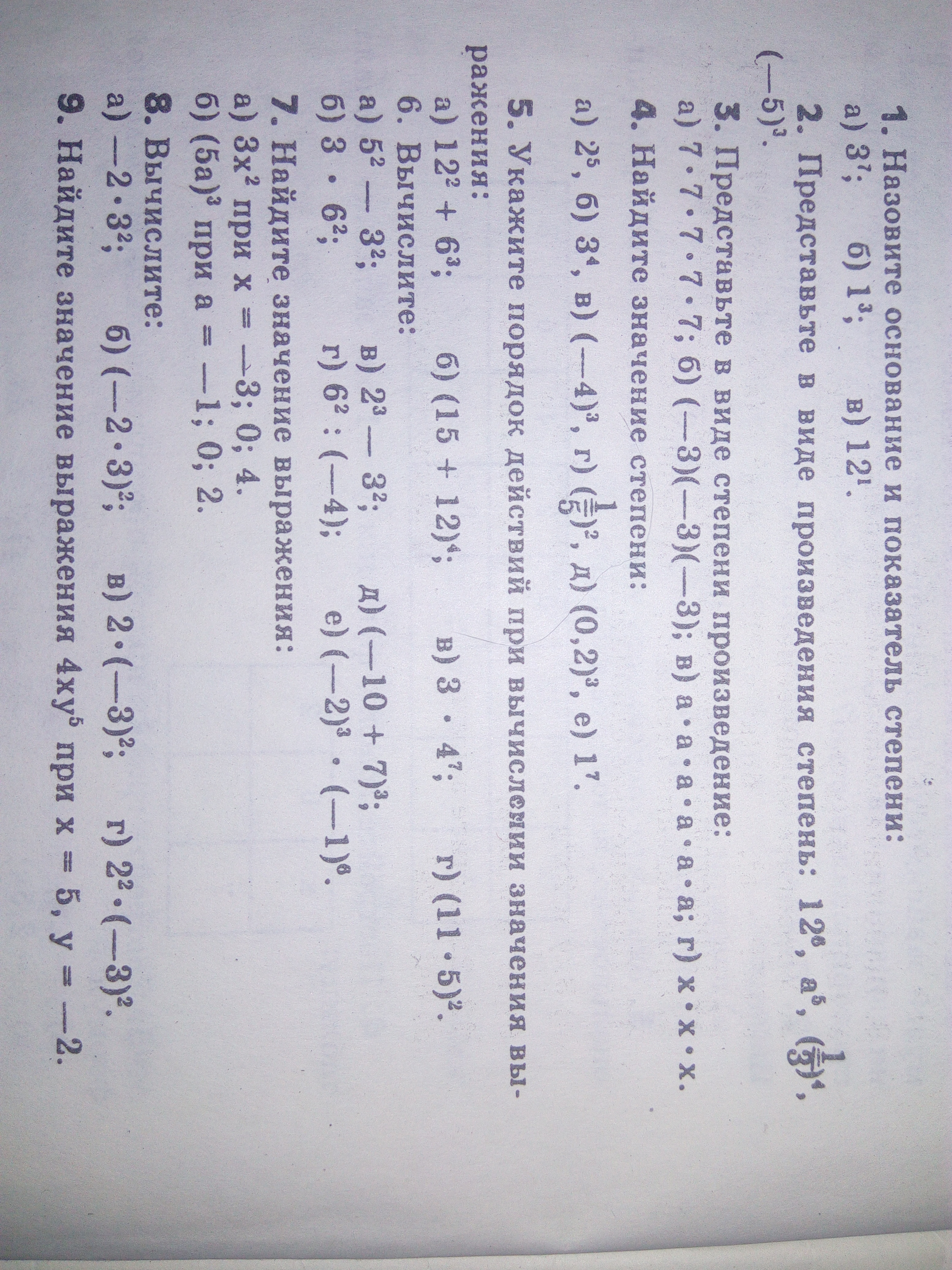 1.а)основание-3,показатель-7 б)1-основание,показатель-3 в)основание-12,показатель-1