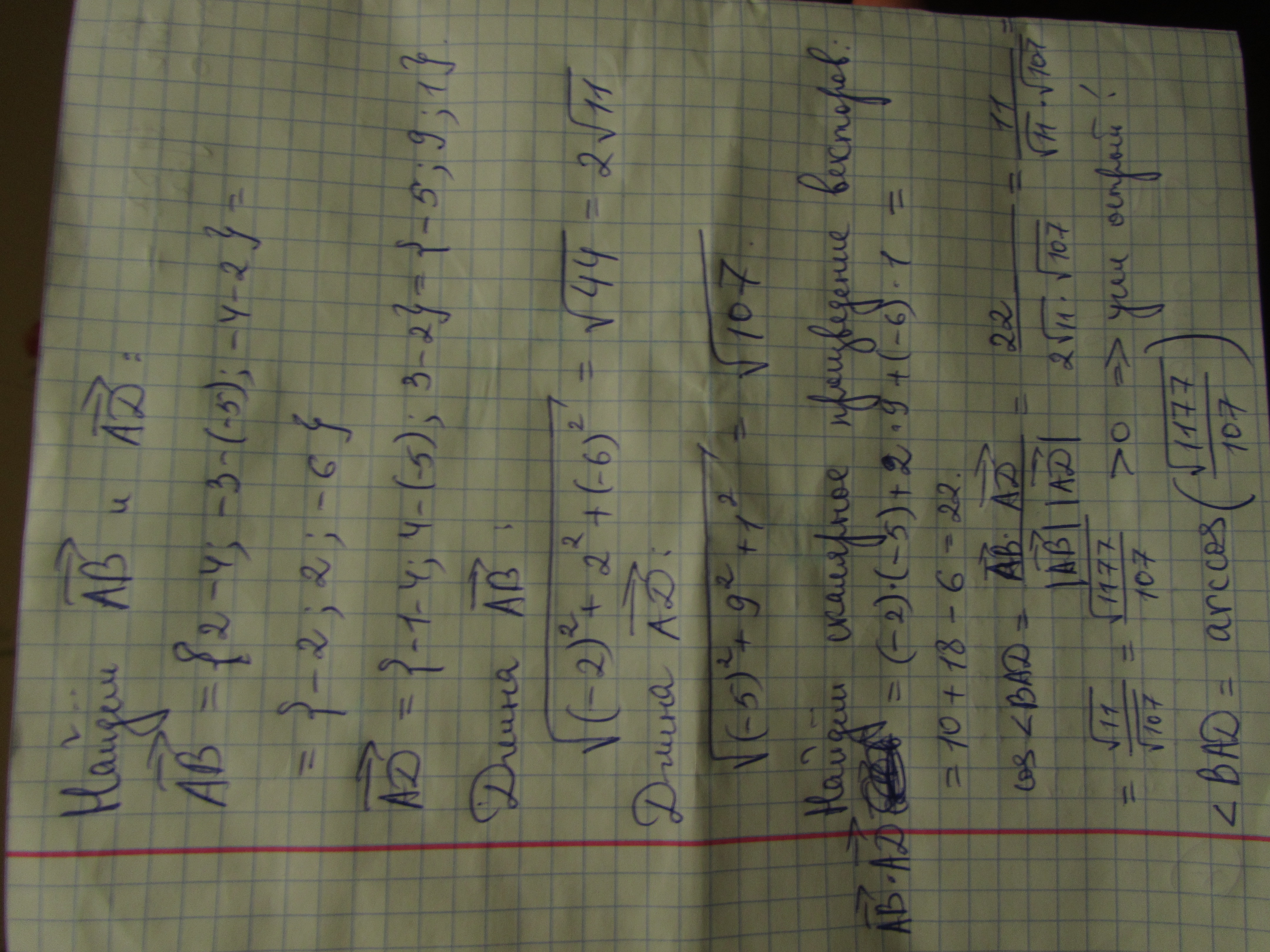 ДОБРЫЙ ДЕНЬ! НАШЛА ВЕРШИНУ Д НЕ МОГУ НАЙТИ УГОЛ ПОМОГИТЕ , ЕСЛИ ЗНАЕТЕ =) Дан параллелограмм АВСД,. НАЙТИ острый угол параллелограмма. А(4;-5;2) В(2;-3;-4) С(-3;6;-3) Д (-1;4;3)
