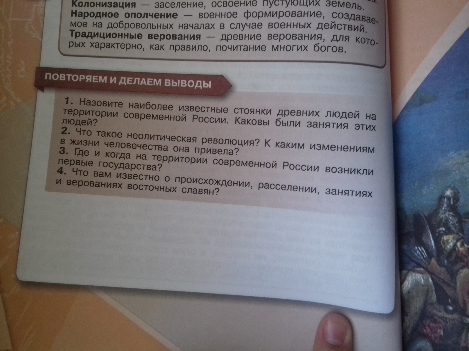ПОЖАЛУЙСТА!!!!!!!! СРОЧНО !!!!!!!!! ОТ 1 ВОПРОСА ДО 4 Назовите наиболее известные стоянки древних людей на территории современной России Каковы были занятия этих людей