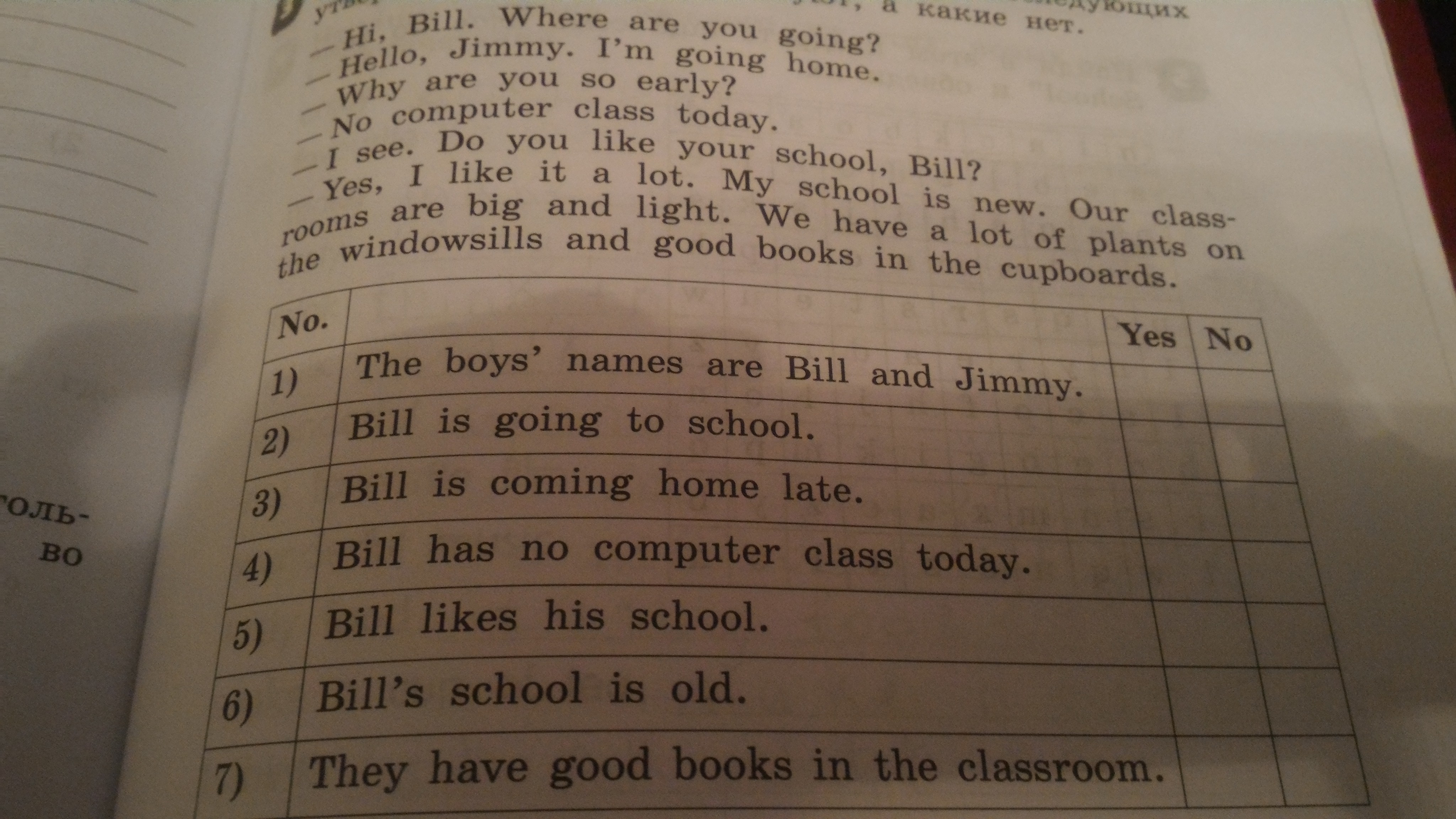 Прочитай диалог и отметь, какие из последующих утверждений ему соответствуют,а какие нет