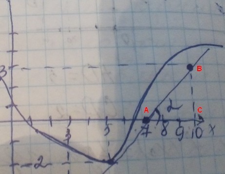 Рассмотрим треугольник АВС. Это прямоугольный треугольник. Касательная является его гипотенузой. Как видно из чертежа, его катеты равны