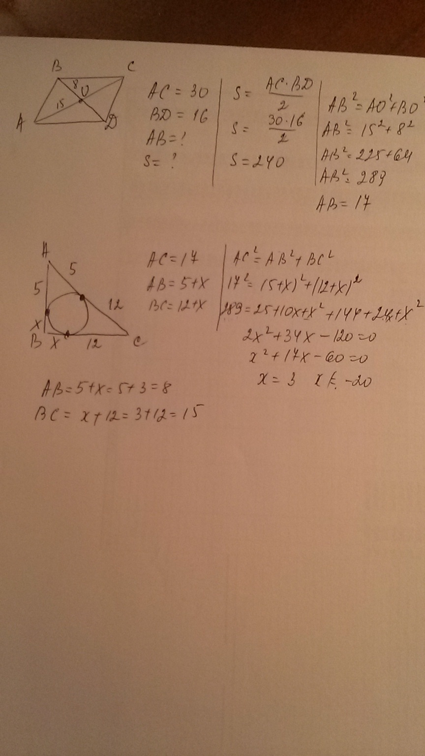 Окружность, вписанная в прямоугольный треугольник,делит гипотенузу на отрезки , равные 5 см и 12см . Найдите катеты