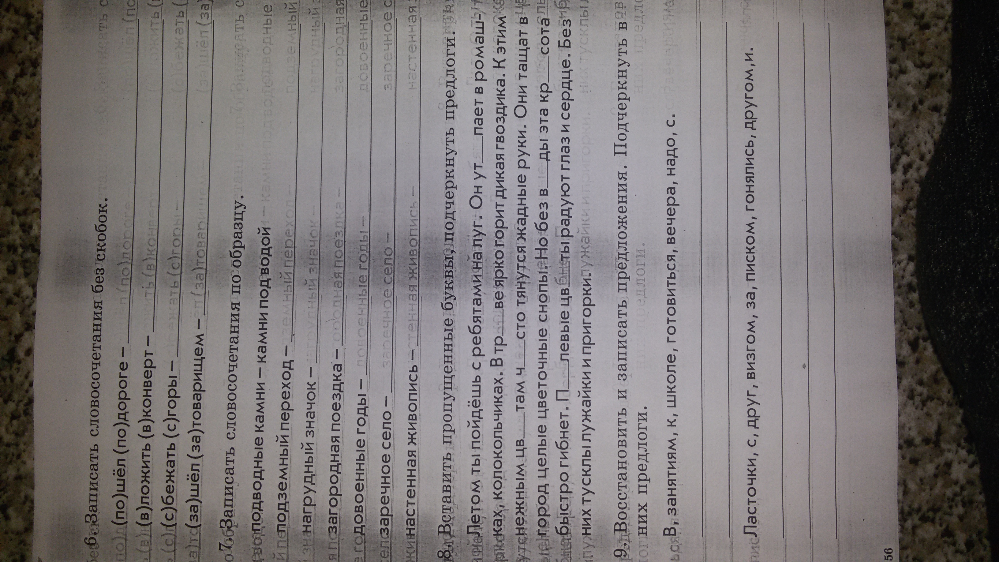6.пошёл по дороге;вложить в конверт;сбежать с горы;зашёл за товарищем;