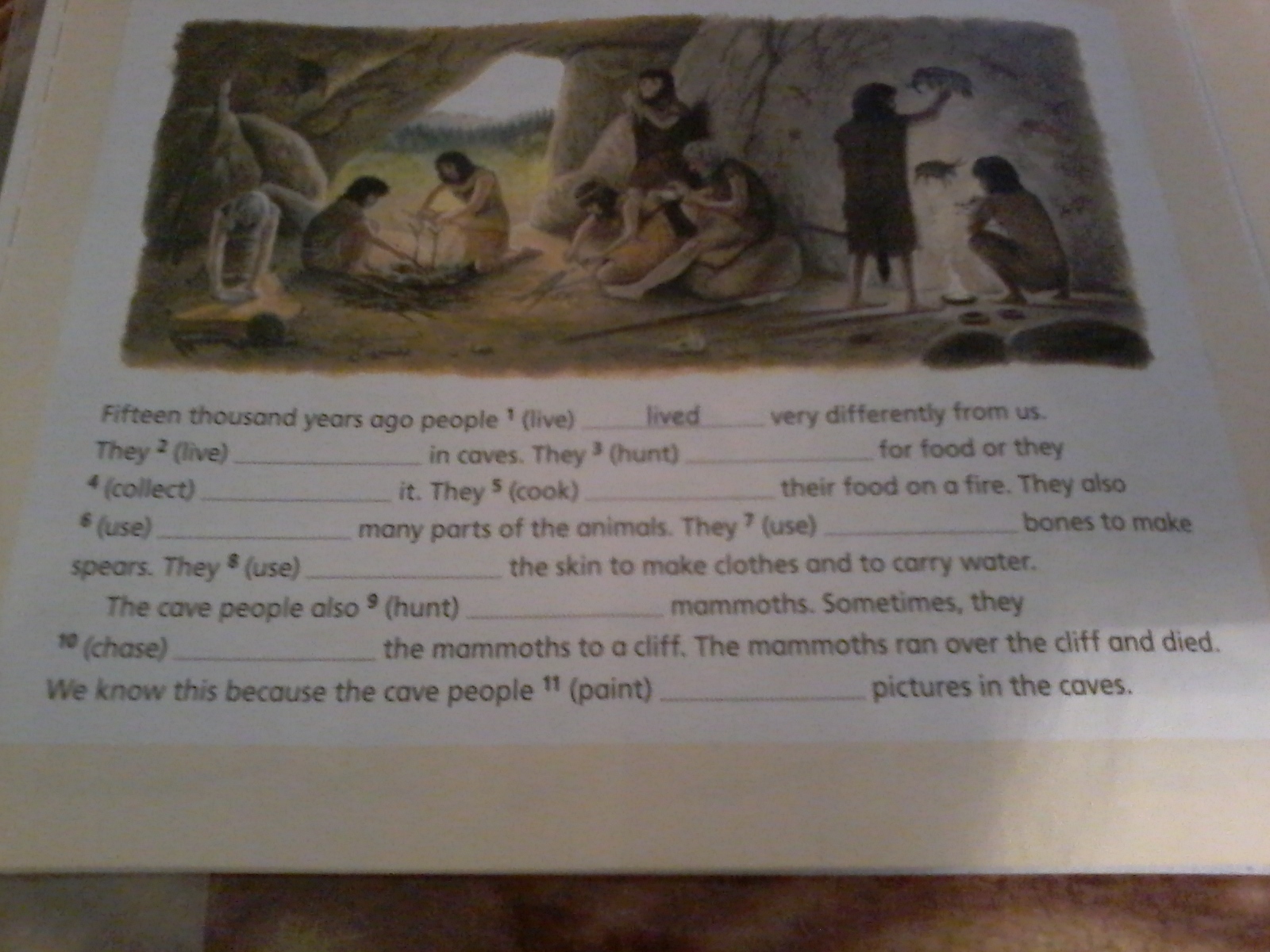 Lived , lived, were hunting , were collecting, cooked , used, were using , used , were hunting on , chased , were painting.