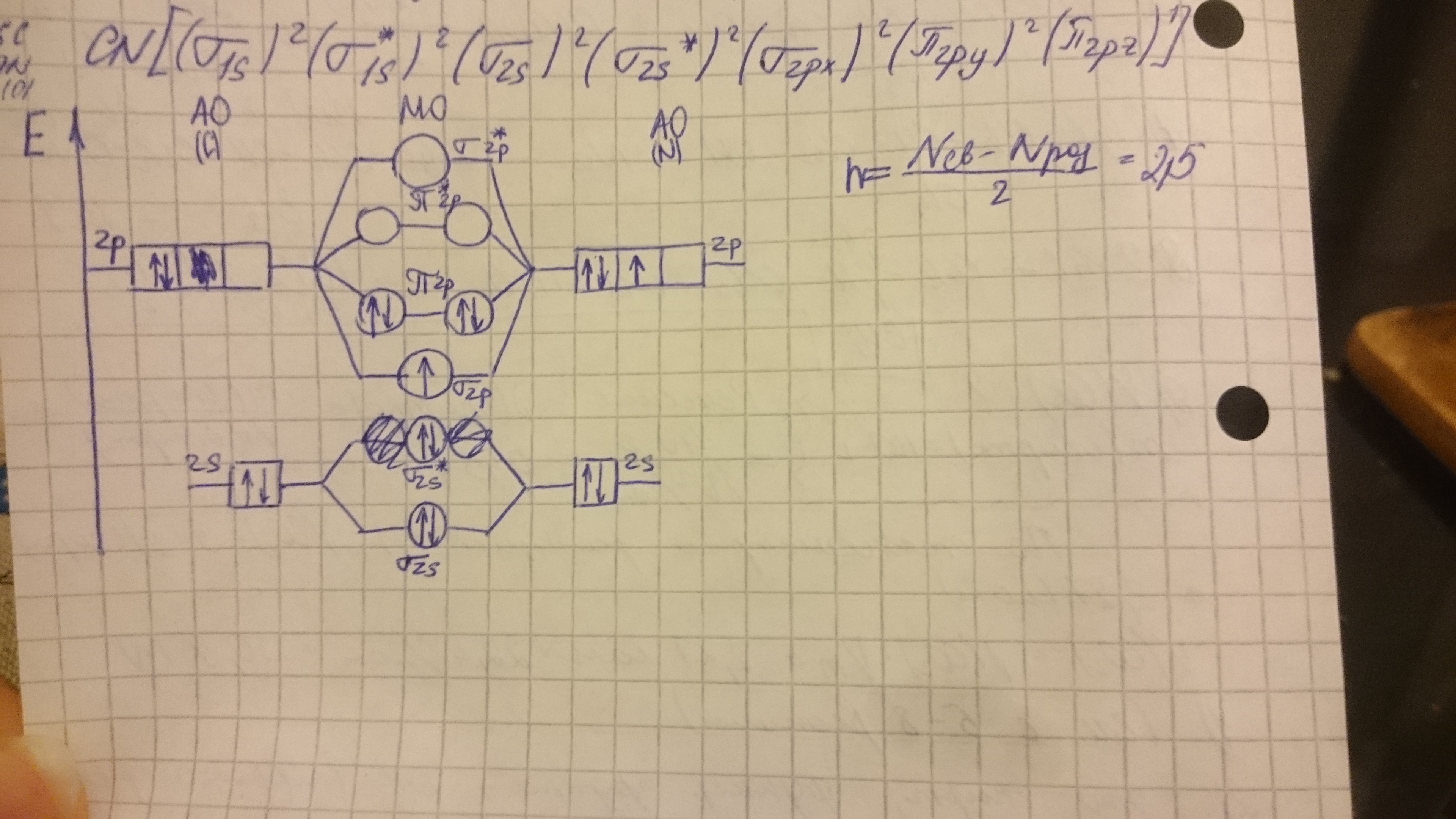 Помогите, срочно!!! Используя принципы метода МО, составить энергетическую диаграмму молекулы СN. написать электронную конфигурацию и определить кратность связи.