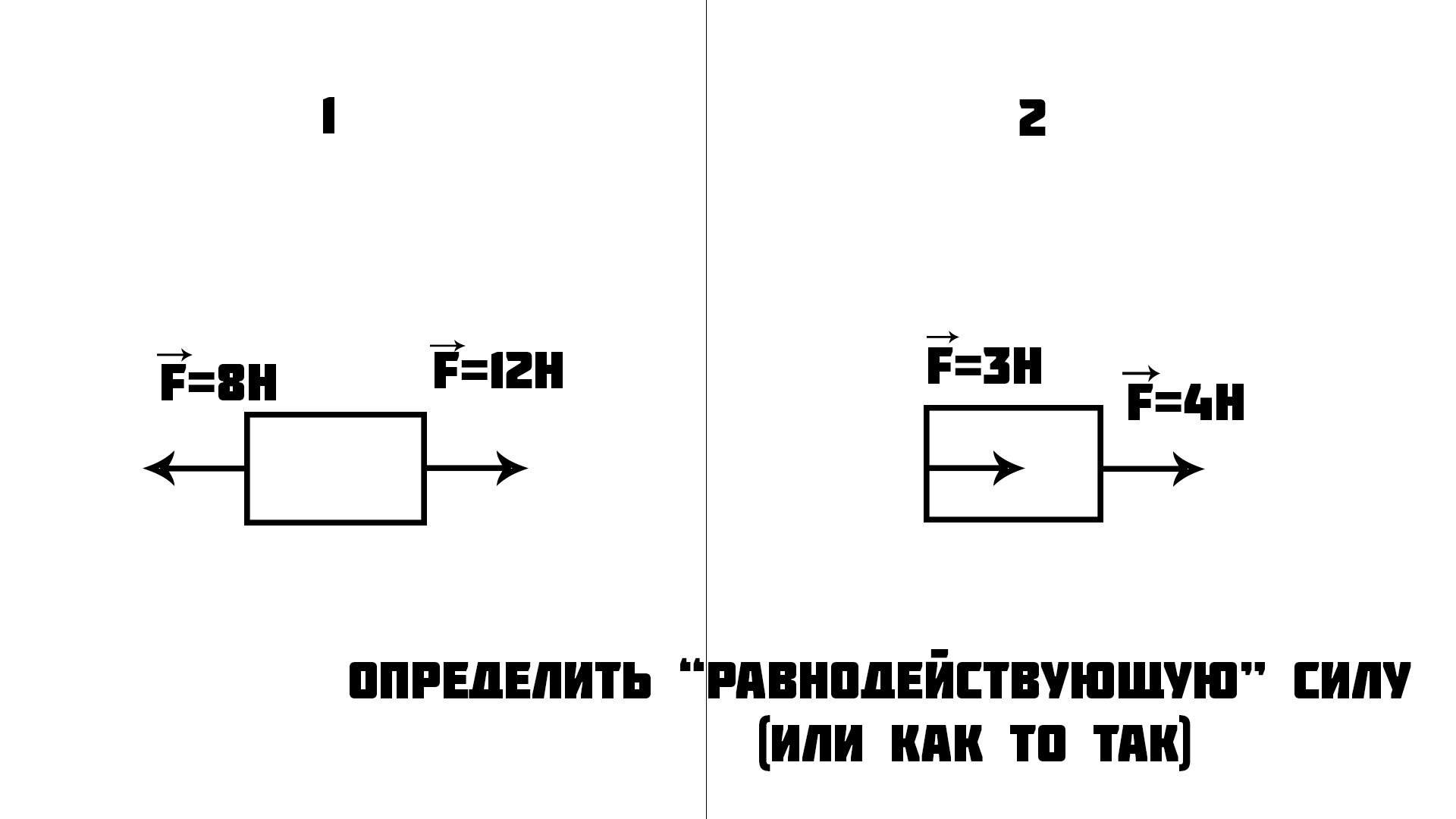 Если 2 или более сил направлены В ОДНУ сторону, мы их складываем, всё, нашли равнодействующую.