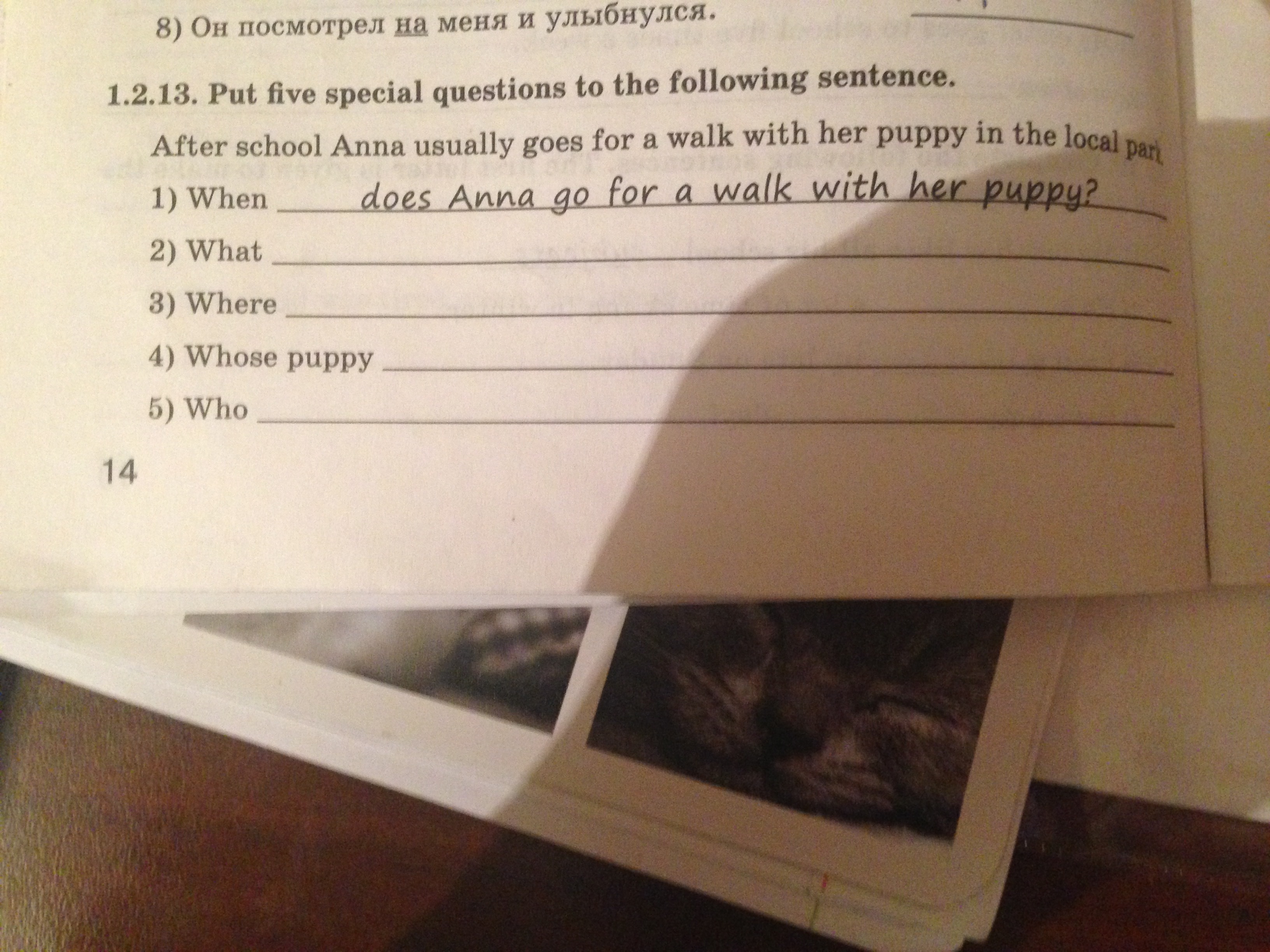 5) Who does go for a walk with puppy after school?