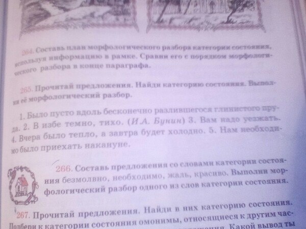 Пусто-категория состояния,отвечает на вопрос как?пусто,обозначает состояние природы.Пусто-суффикс о,пуст- корень.Темно,тихо-категория состояния,отвечает на вопрос как?темно,тихо,обозначает оценку состояния.Темно-суффикс 0,корень-тем,суффикс-н,тихо-суффикс о,корень-тих.Надо-категория состояния,отвечает на вопрос каково?надо,обозначает оценку действий.Надо-суффикс о,корень над.Тепло,холодно-категория состояния,отвечает на вопрос как?тепло,холодно,обозначает состояние природы.Тепло-суффикс о,корень тепл,холодно-суффикс о,корень-холод,суффикс н. Необходимо-категория состояния,отвечает на вопрос каково?необходимо,обозначает оценку действий.Необходимо-суффикс о,корень необходим. Фух,написала...
