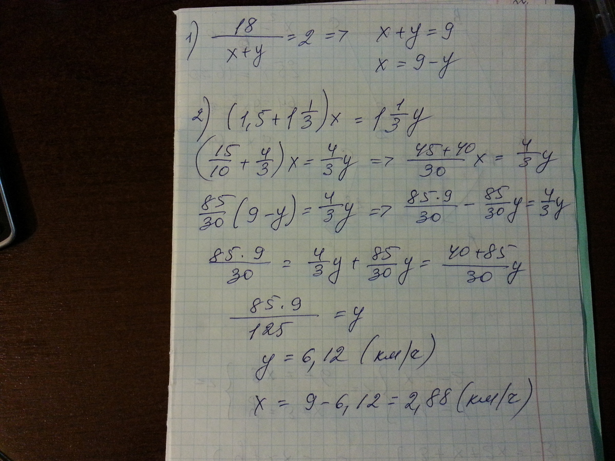 Из А в В (АВ = 18км) вышел турист. Через 1,5 ч из В ему навстречу вышел другой турист, и они встретились через 1 ч 20 мин. Если бы они вышли одновременно, то встретились бы через 2 ч. Какова скорость каждого туриста?