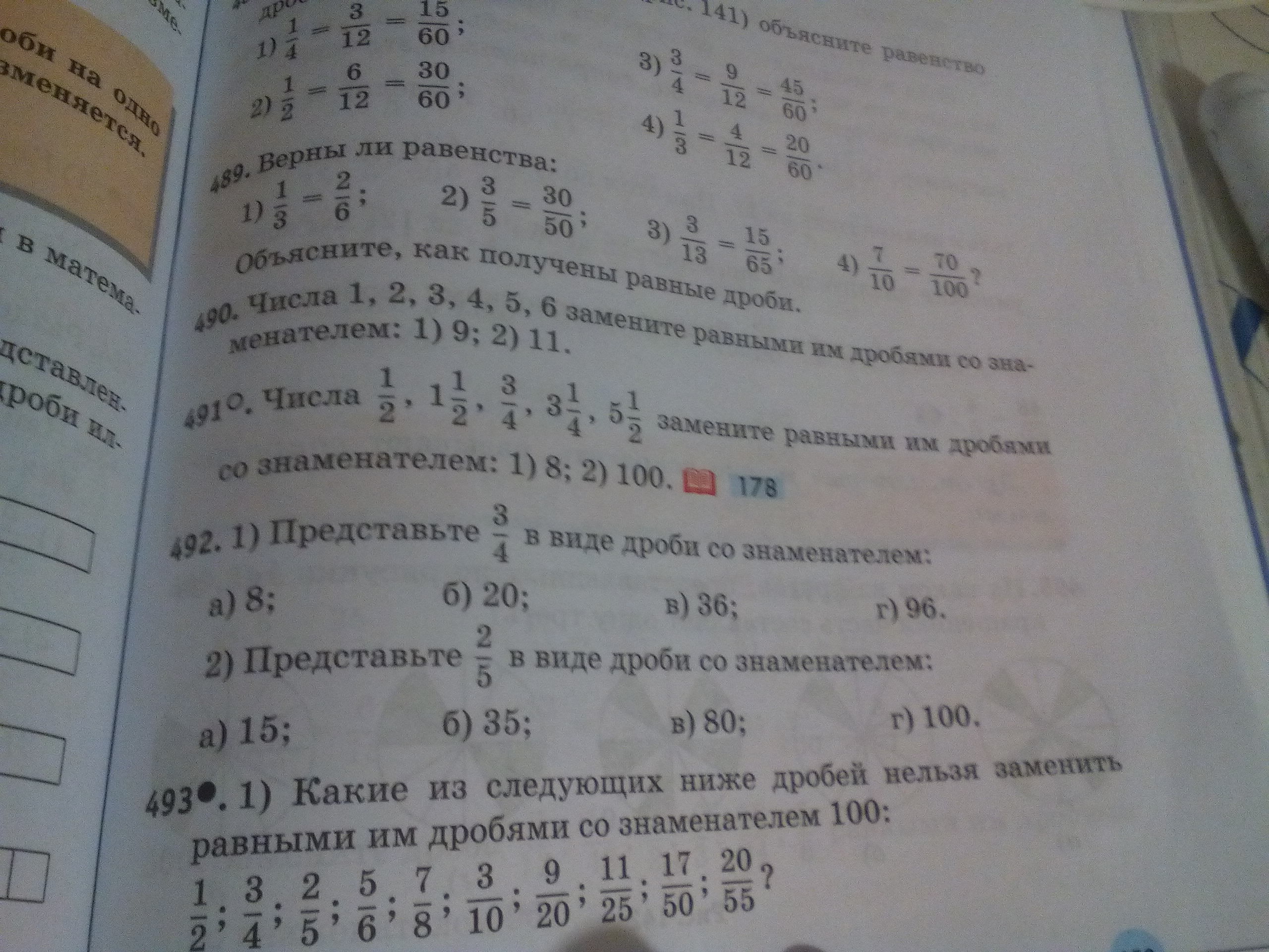 Дробь: 3/4 а) 6/8 б) 15/20 в) 27/36 г) 72/96