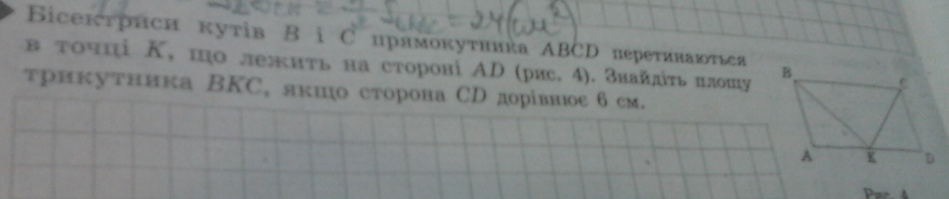 АД=2*6=12 площадь прям-ка 6*12=72, а площадь ВКС=1/2 *72=36