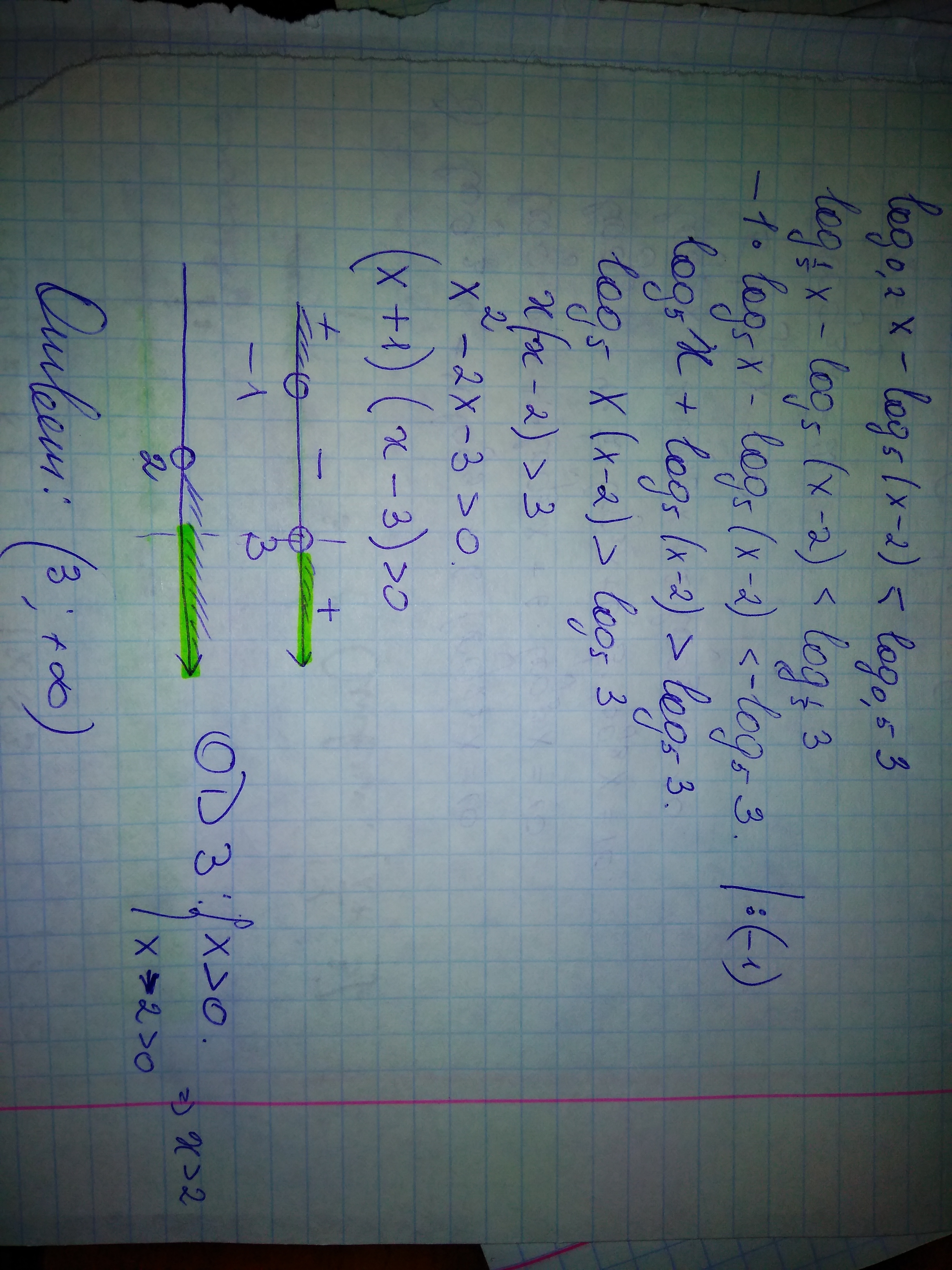 log0.2 x + log0.2 (x-2) < log0.2 3