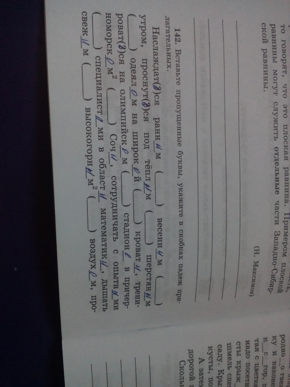 ранним - творительный, весенним - творительный, широкой - родительный, олимпийском - предложный, причерноморском - предложный, опытными - творительный, свежим - творительный, высокогорный - именительный
