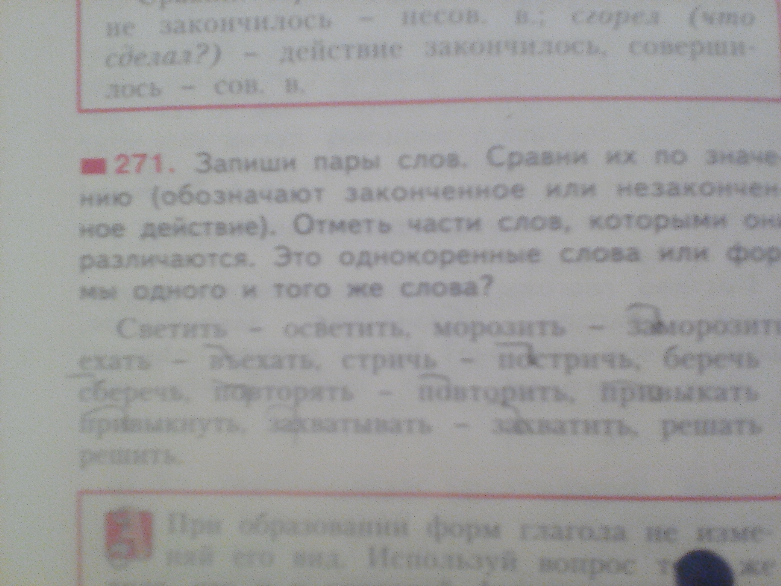 Выберите любые три пары слов из упр 271. Образуй от них возможные формы времени в единственном числе , не изменяя вид глагола