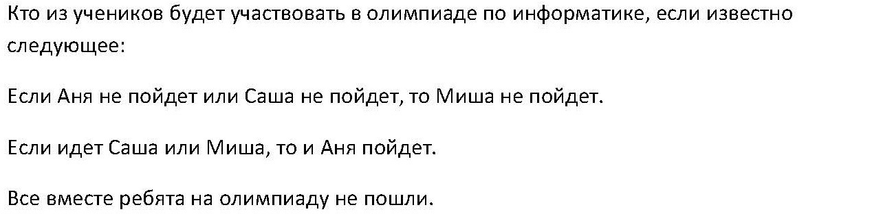 пойдёт Аня. Потому что вместе идти не могли. то есть на олимпиаду пойдёт один ребёнок. Если пойдёт Миша или Саша, То Аня тоже пойдёт. А если пойдёт Аня, что случится в условии не сказано. значит пойдёт Аня.