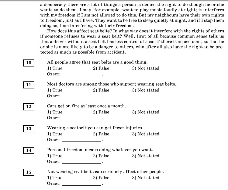Прочитайте текст. Определите какие из приведенных утверждений 10-17 соответствуют содержанию текста (1 - True), какие не соответствуют (2 - False) и о чём в тексте не сказано, то есть на основании текста нельзя дать ни положительного, ни отрицательного ответа (3 - Not stated). В поле ответа запишите одну цифру, которая соответствует номеру правильного ответа.