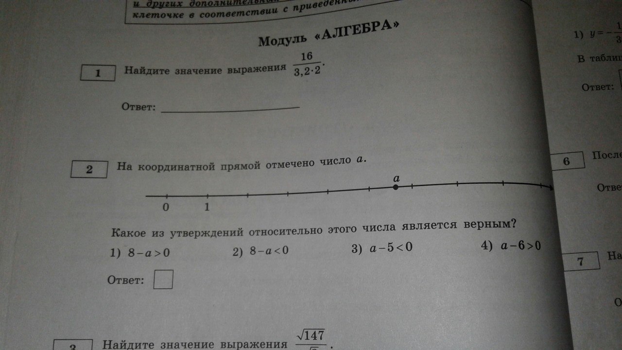 На координатной прямой отмечено число а. Какое из утверждений верно: 1) 8-а>0
