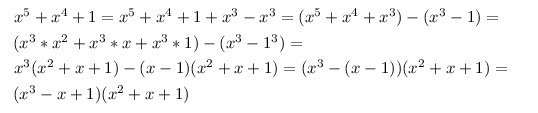 Разложить многочлен x^5+х^4+1 в произведение нескольких (не менее двух) многочленов степени не ниже первой.