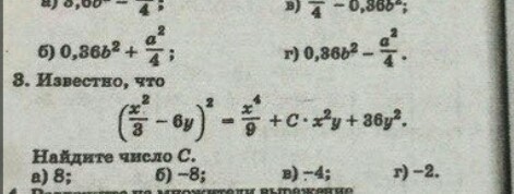 (х²/3-6у)²=(х²/3)²-2*(х²/3)*6у+(6у)²=х⁴/9-4х²у+36у²