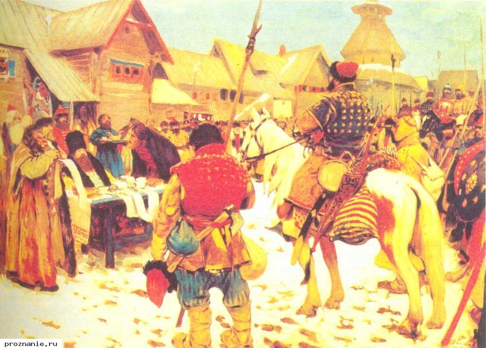 Напишите пожалуйста небольшое сочинение по картине С.В. Иванов. Смотр служилых людей. Ну или дайте идею хотя бы как начать писать.