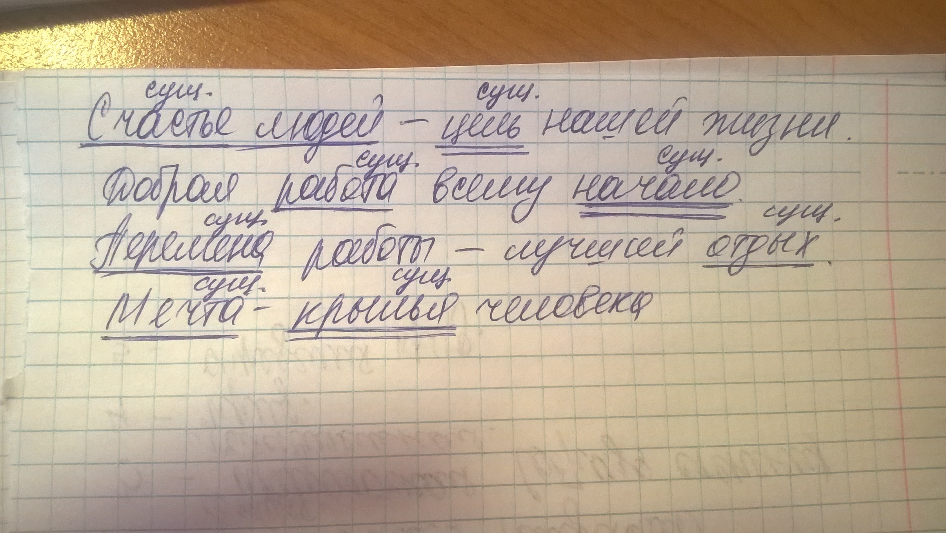 Счастье людей цель нашей жизни . Добрая работа всему начало .Перемена работы лучший отдых . Мечта крыля человека .