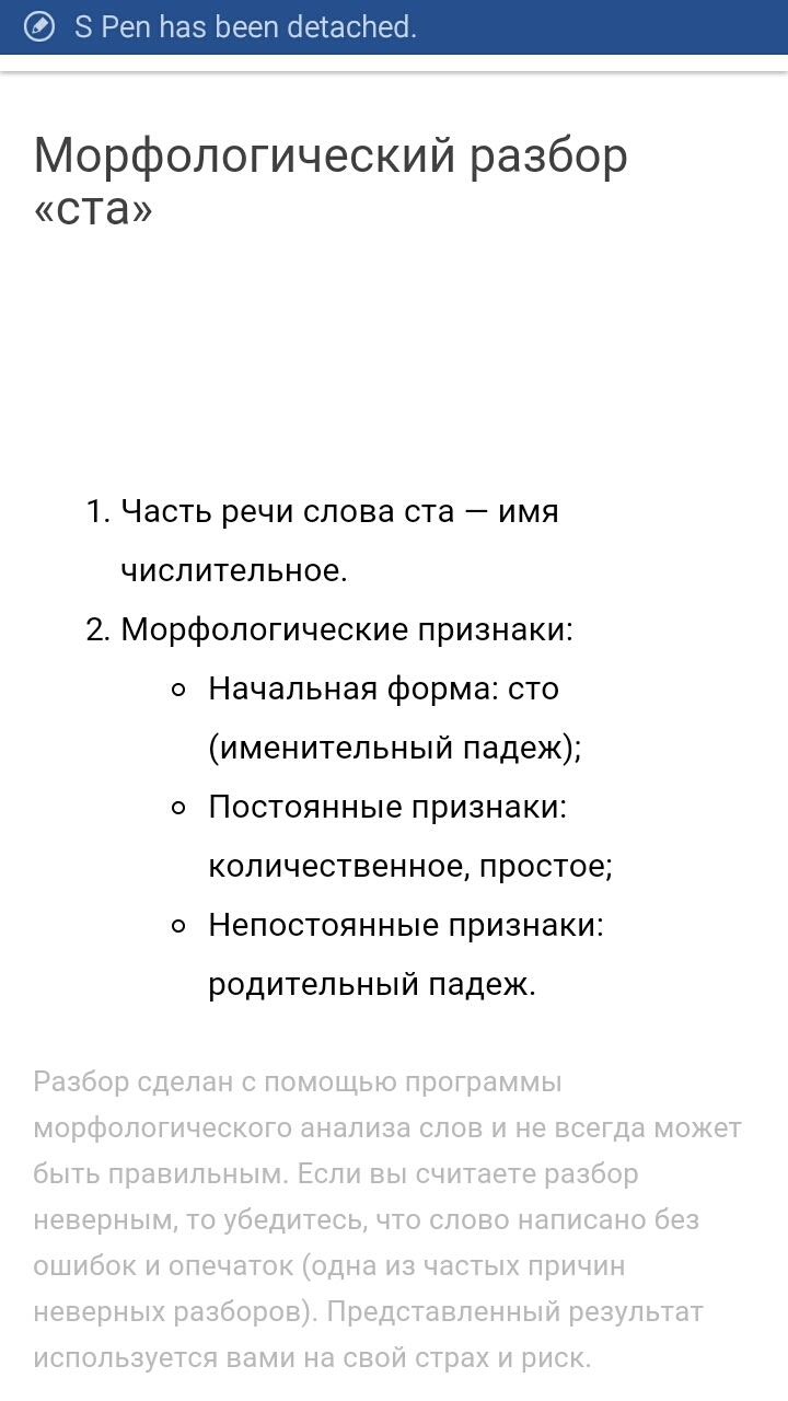 На фотографии сделано морфологический разбор слова ста
