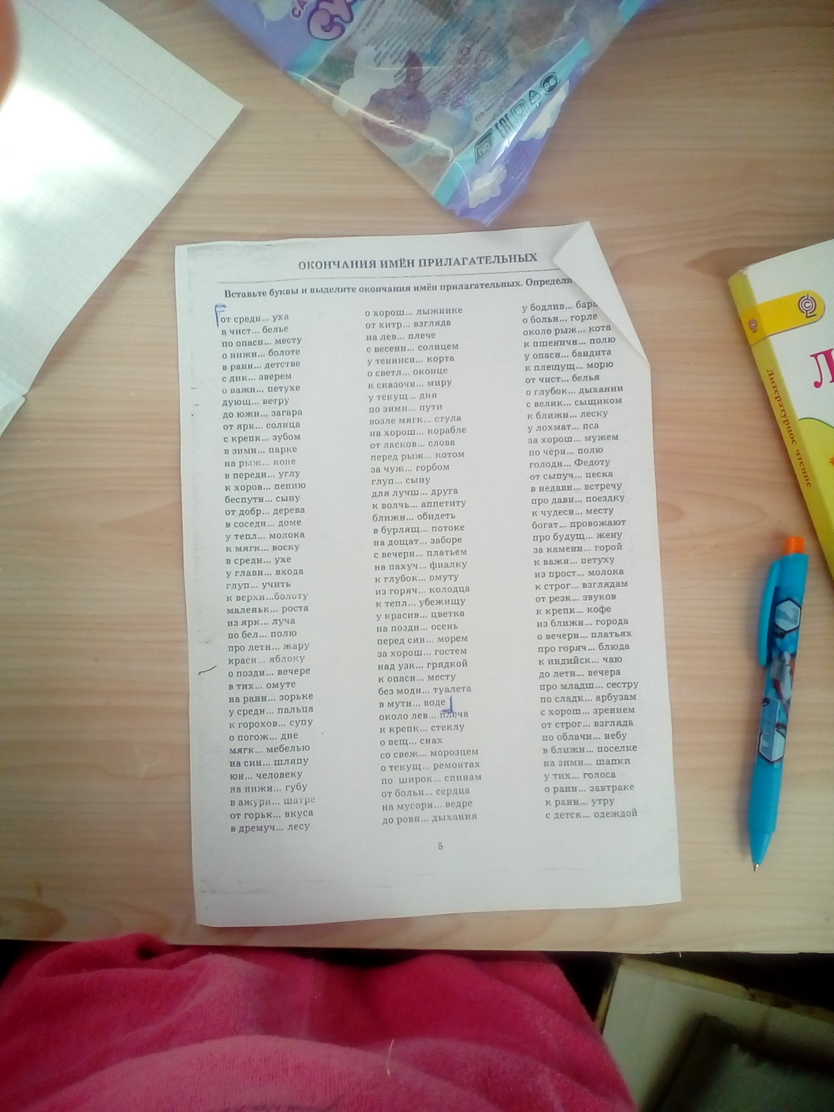окончание имен прилагательных определить окончание имен прилагательных и существительных определить род число и падеж от среднего уха до в мутной воде
