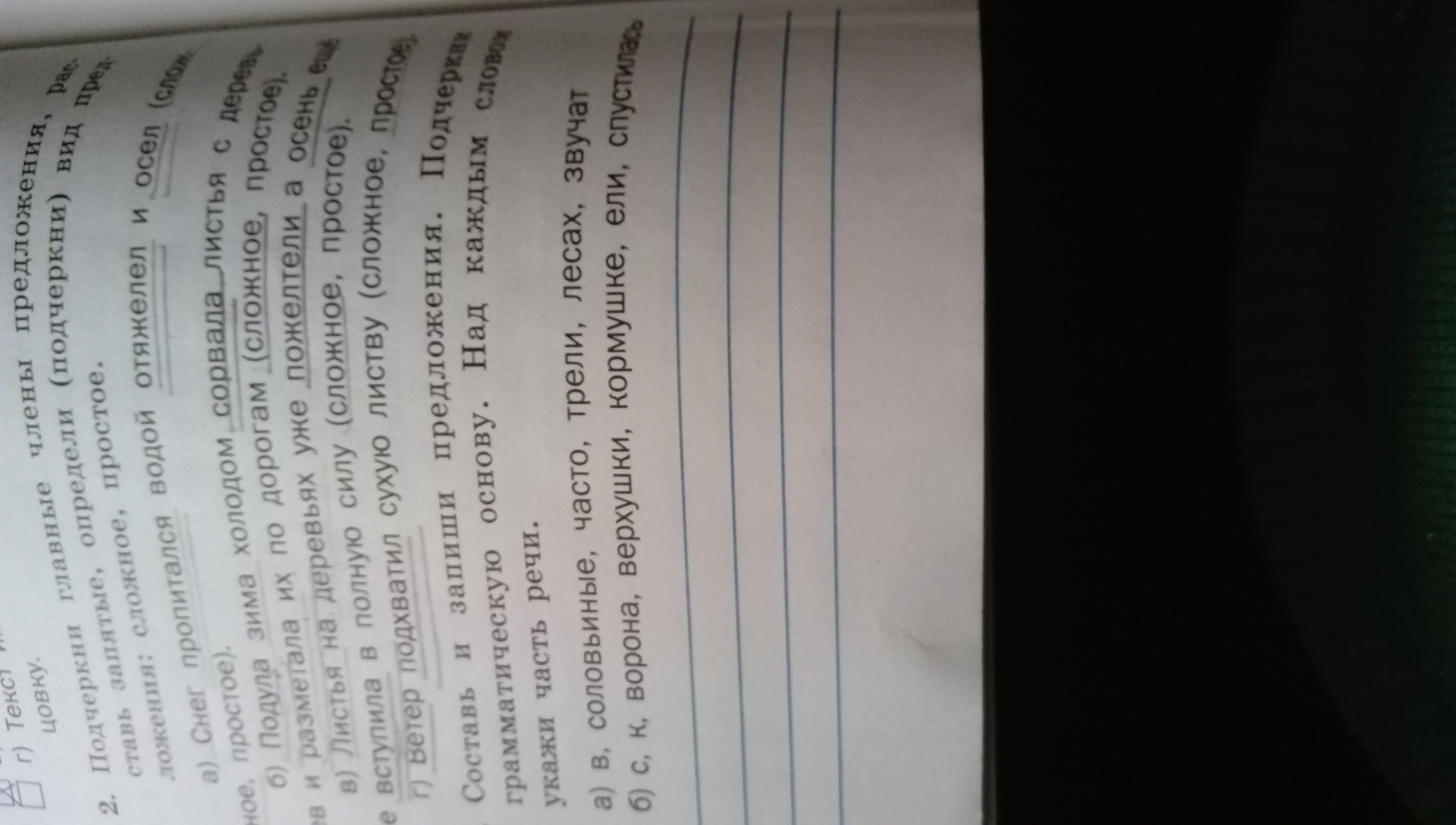 составь и запиши предложения. Подчиркни грамматическую основу. над каждым словом укажи часть речи.
