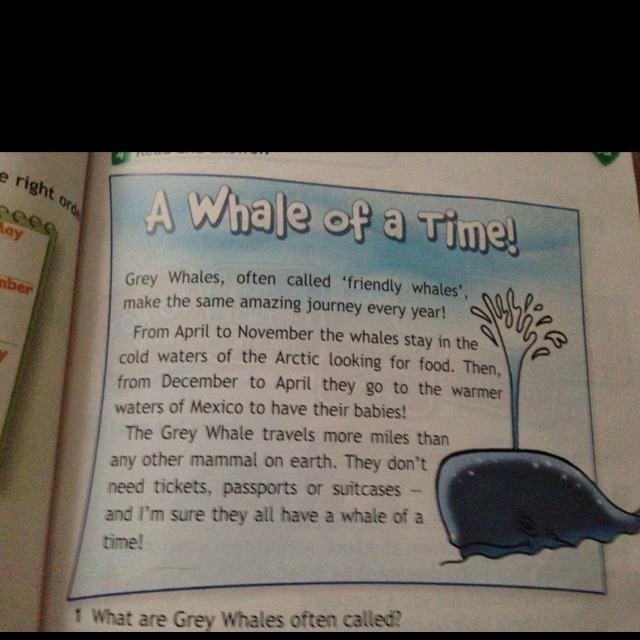Серый кит путешествует больше миль, чем любое другое млекопитающие на земле. Им не нужны билеты, паспорта или чемоданы, и я уверен, что все они имеют много времени.