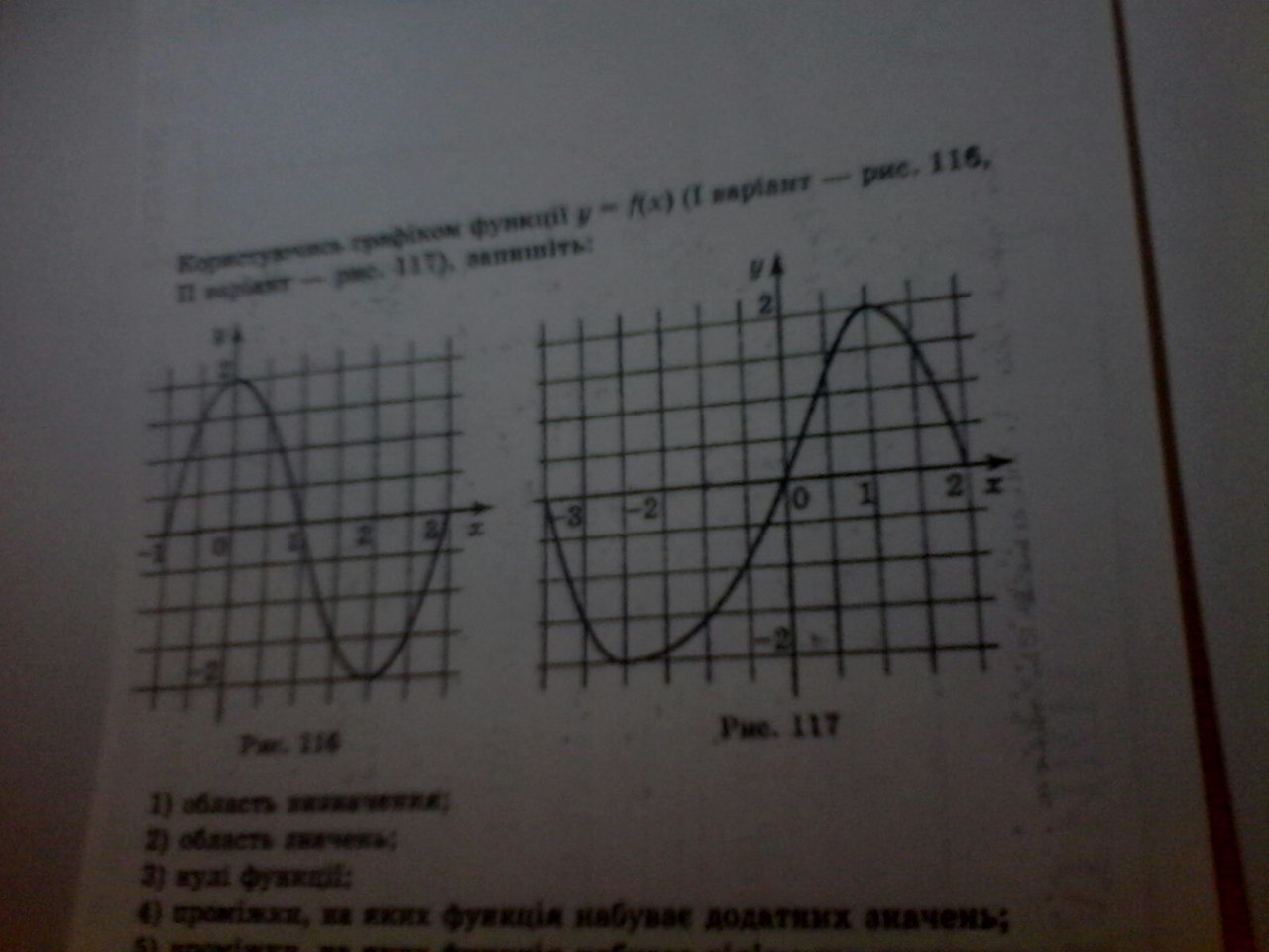ОЧЕНЬ ПРОСТОЕ ЗАДАНИЕ С ГРАФИКОМ, ПОЖАЛУЙСТА ПОМОГИТЕ, СРОЧНО.(х=0). Задание: пользуясь графиком функции y=f(x) на рисунке 117 запишите 1)область определения функции 2)область значения функции 3)ноли функции... Так вот, дело в том, что я вообще не имею представления как по графику составить функцию, объясните пожалуйста