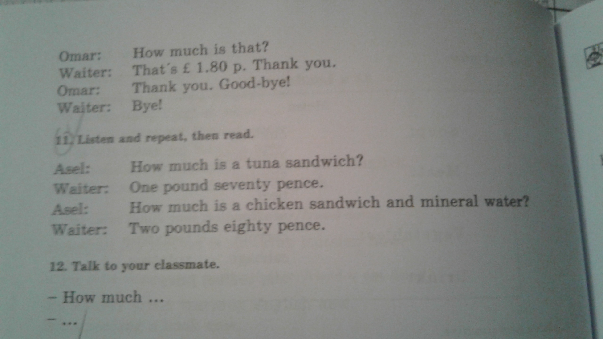 Официант : два фунта восемьдесят пенсов.