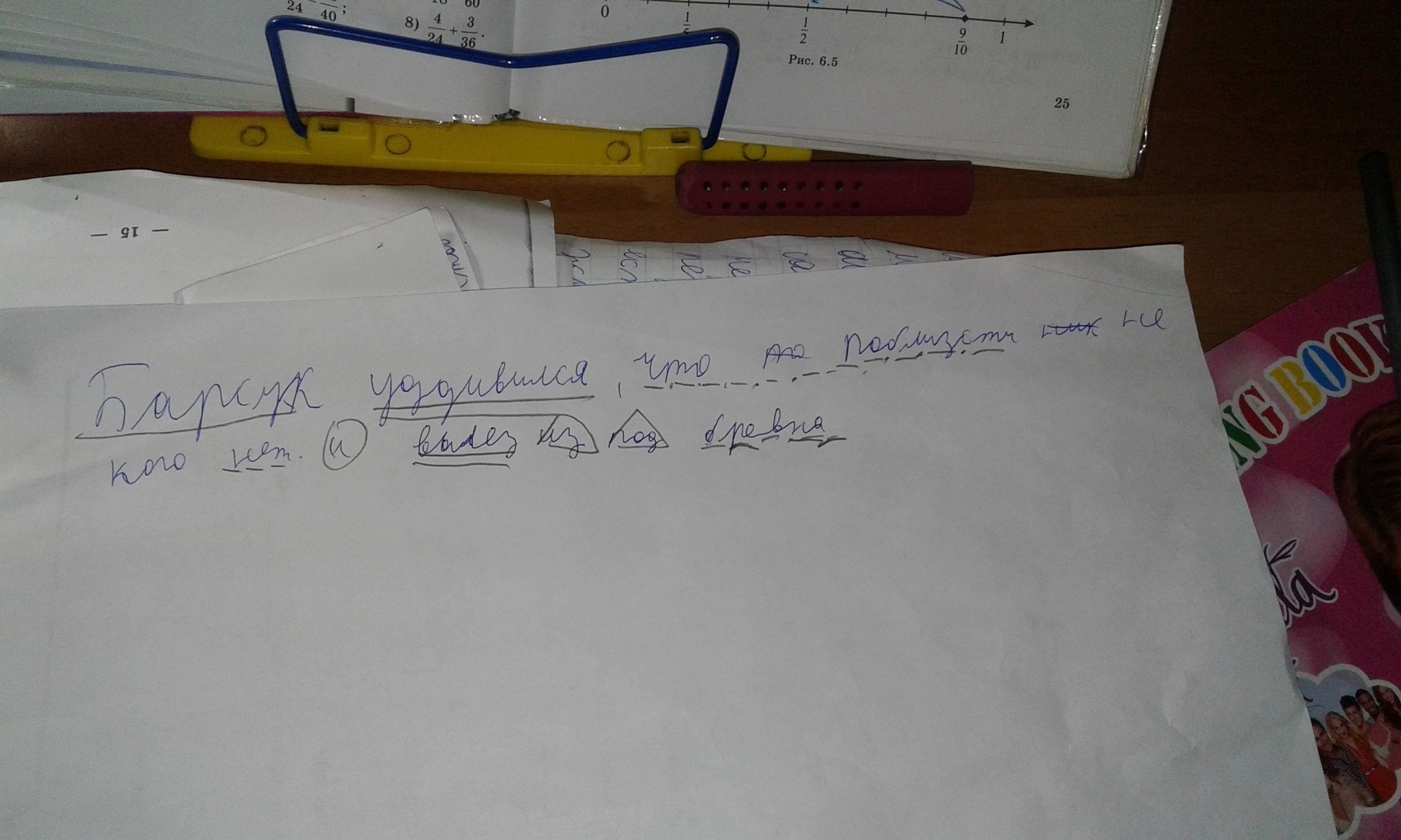Сделайте сентаксический разбор предложения срочно - Барсук удивился, что по близости не кого нет и вылез из под бревна